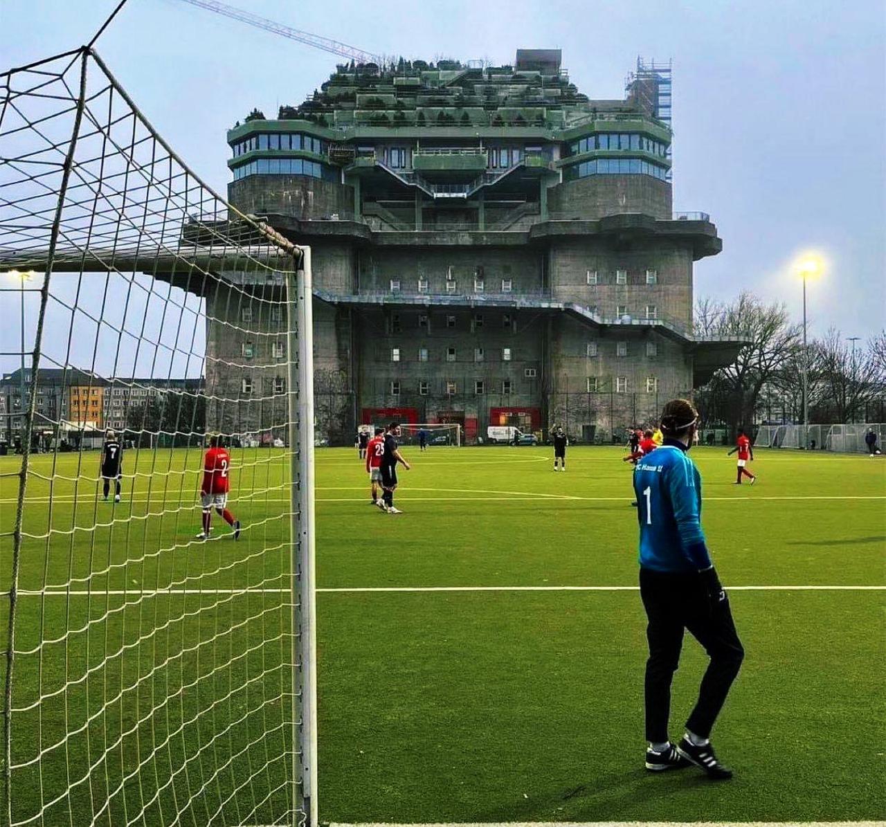 这是德国低级联赛球队SC汉萨汉堡使用的体育场🇩🇪🏟️📍 他们在圣保利的这座二战防空洞前进行足球比赛🪖 现在防空洞已被修复,是豪华酒店、夜店和音乐会场所的所在地。