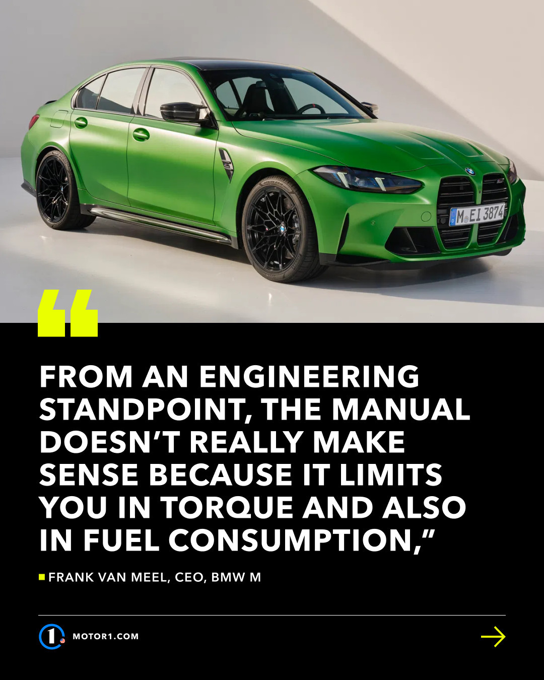 宝马 M 系列的手动变速箱可能时日无多了。CEO 范梅尔(Frank van Meel)表示,从性能和燃油经济性的角度来看,手动挡已经“没什么意义”,而且未来“想要保留手动挡将变得愈发困难”。