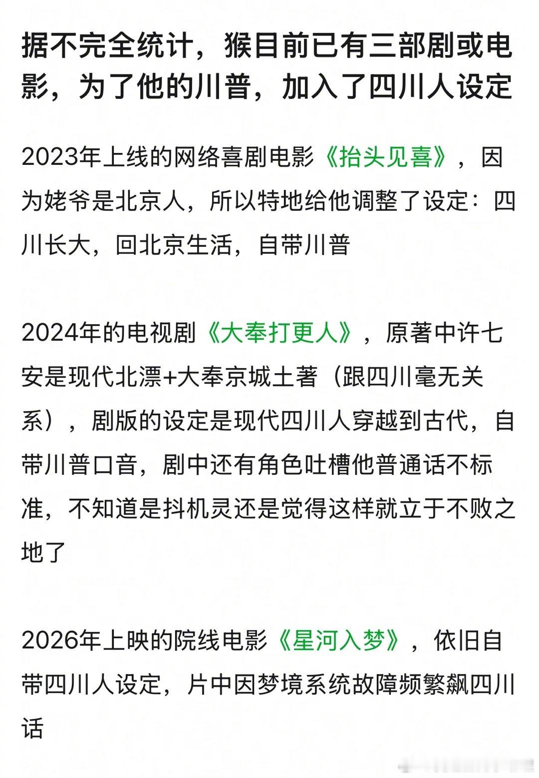 目前王鹤棣已有三部剧或电影,为了他的川普,加入了四川人设定,这是私人订制?
