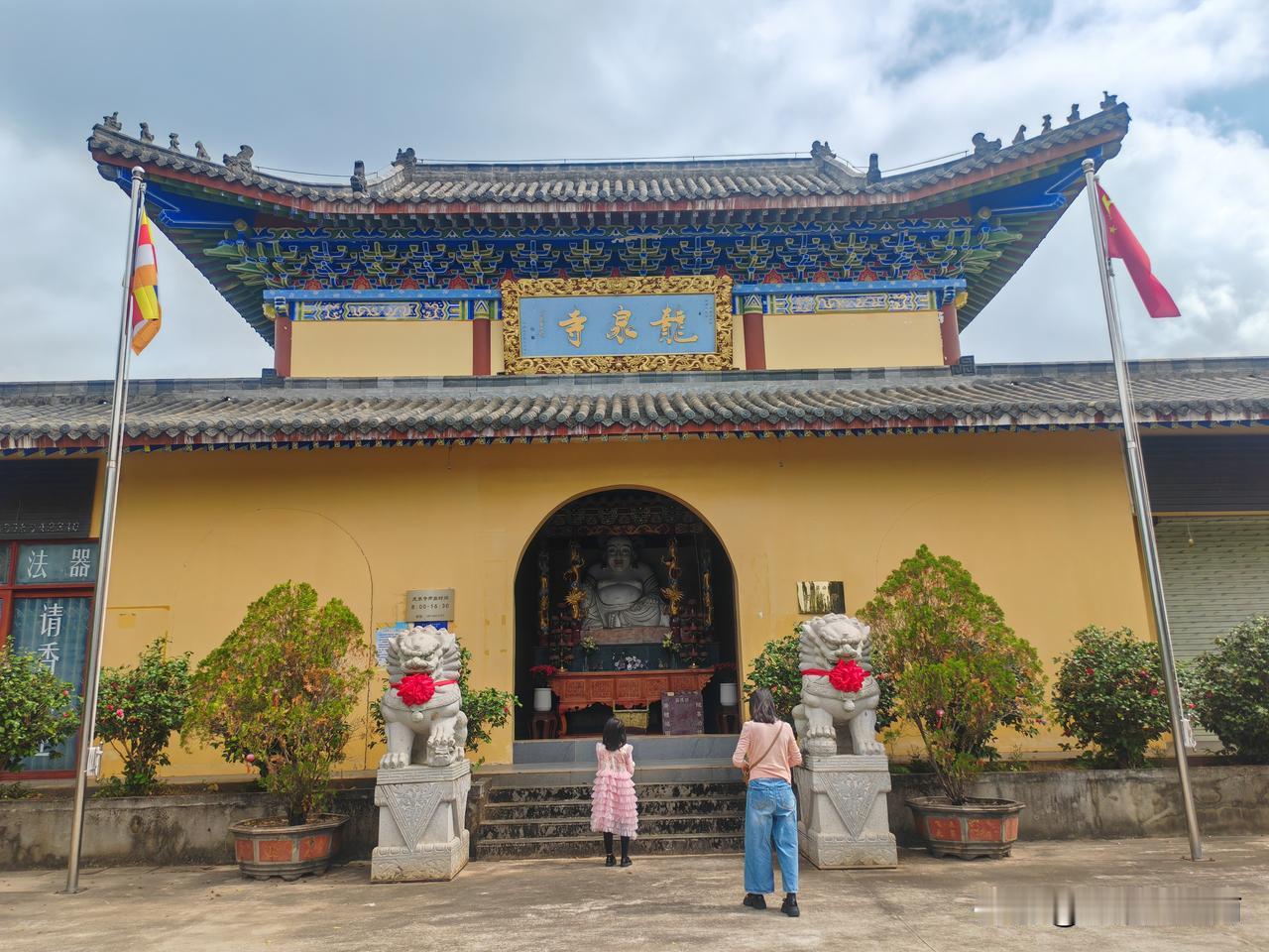 今日大年初三,出得城来去郊外演丰,寻得一清静之地_龙泉寺。 该寺三进,分别是一进大门上书龙泉寺,供奉弥勒佛,二进文殊殿,供奉文殊菩萨,三进大雄宝殿,供奉如来佛。 寺在去演丰镇的县道路边,交通方便,适逢中午时分,顺便在寺里吃了斋饭,换个口味。