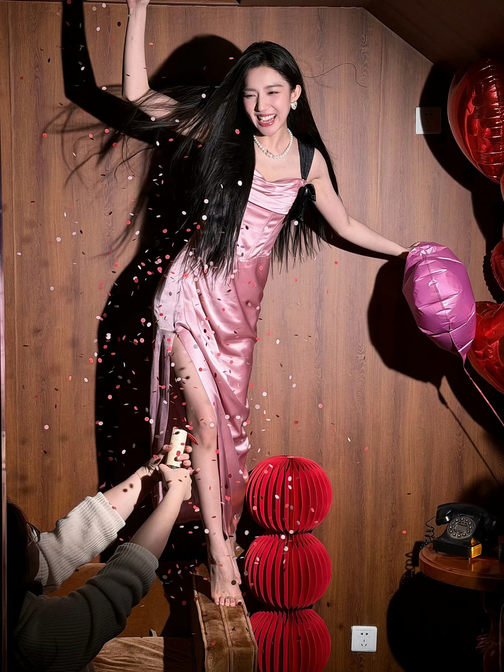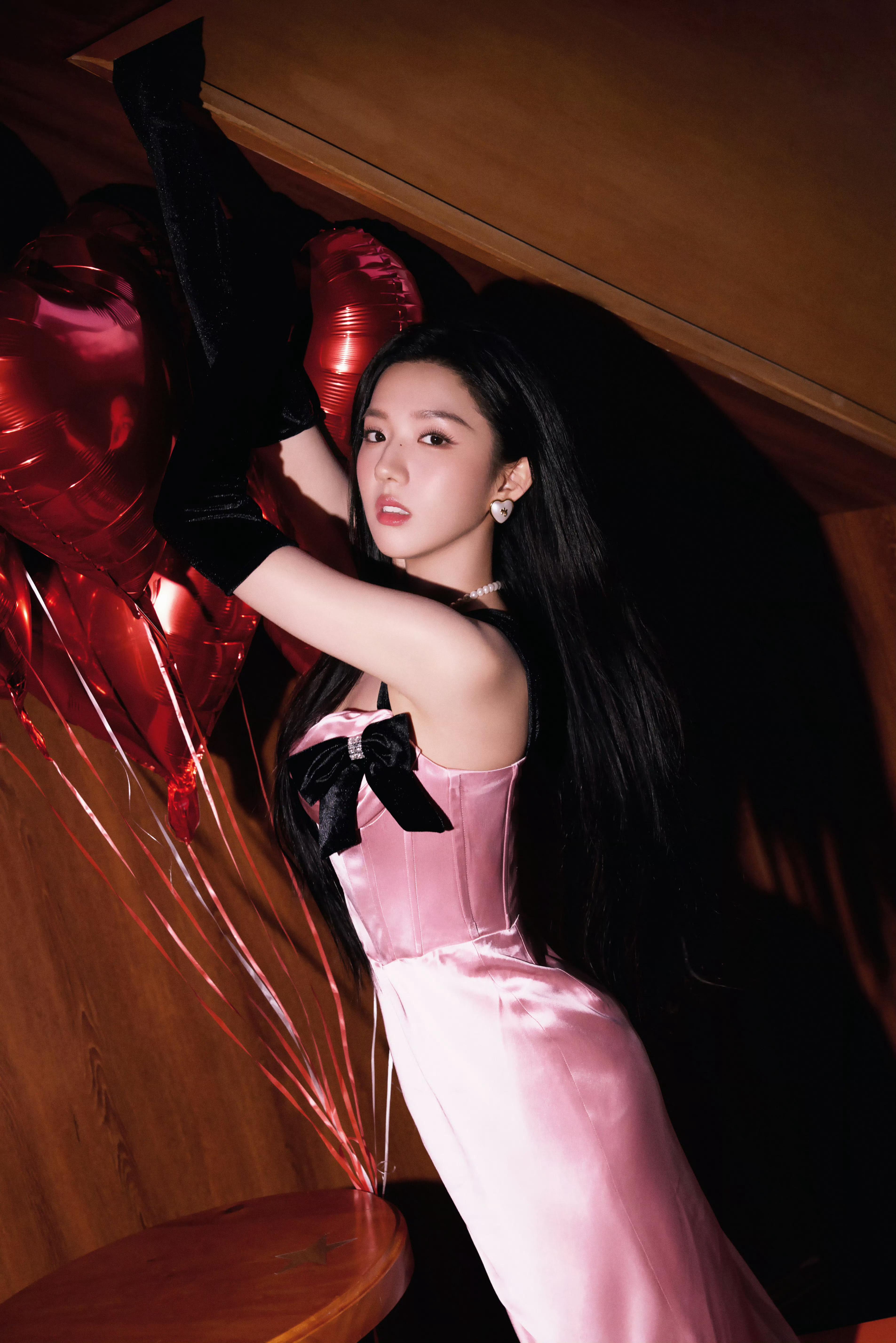 苏晓彤 x 粉色开叉连衣裙❤️