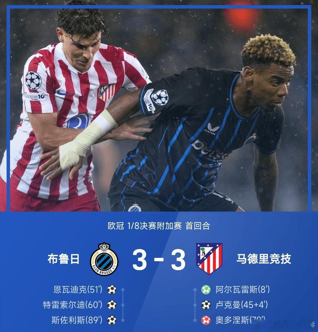 布鲁日3比3马竞每日足球推荐五大联赛欧冠25/26赛季欧冠1/8决赛附加赛首回