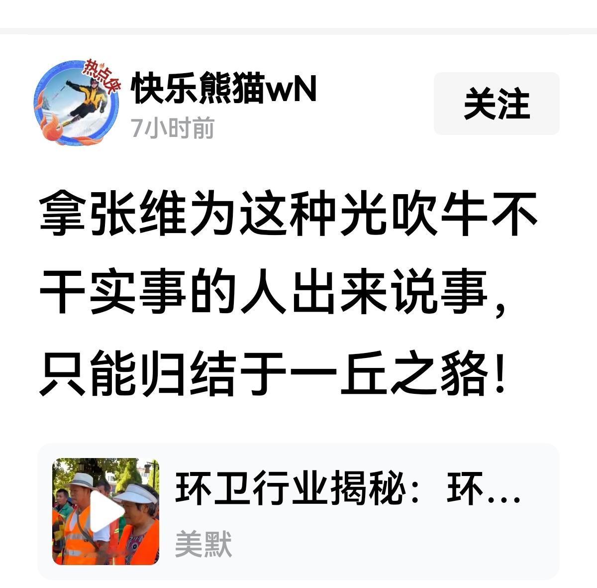 【别拿环卫工人说事】 动不动就是马路天使 动不动就去慰问环卫工人 殊不知环卫工人只拿一千多块钱 全部是外包的 也就是包工头低价竞标成功,反过来招募60岁以上农村老人,工资压的越低越好。 为什么国外服务行业要给小费? 为什么人工越来越贵? 节目里拿环卫工人说事,就是表面上的文章。