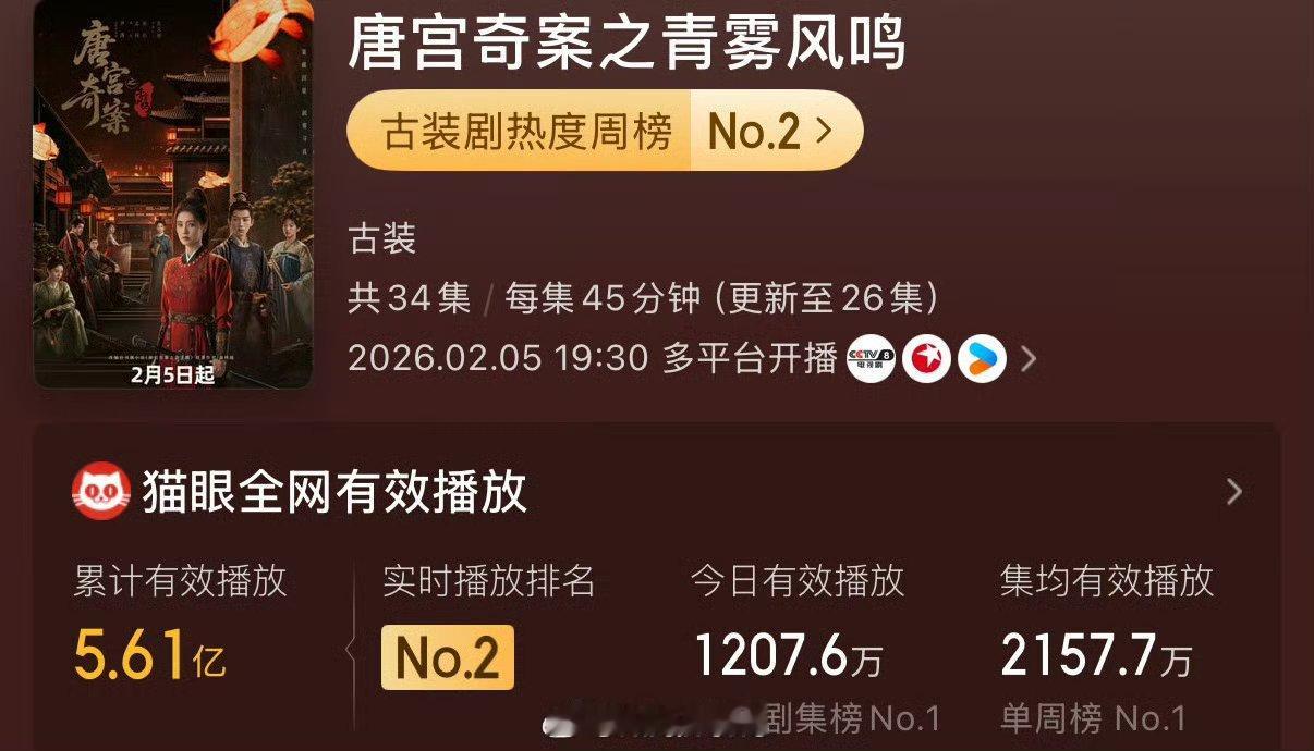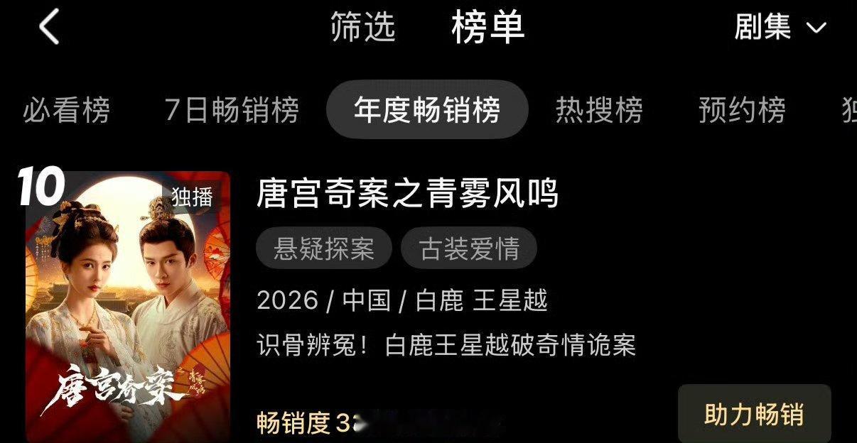 白鹿唐宫奇案之青雾风鸣👖站内拉新年榜进前十,好快呀🔥唐宫奇案收视率直接登顶了,集均有效播放量破2157w了……CVB901白鹿太扛收视率了!