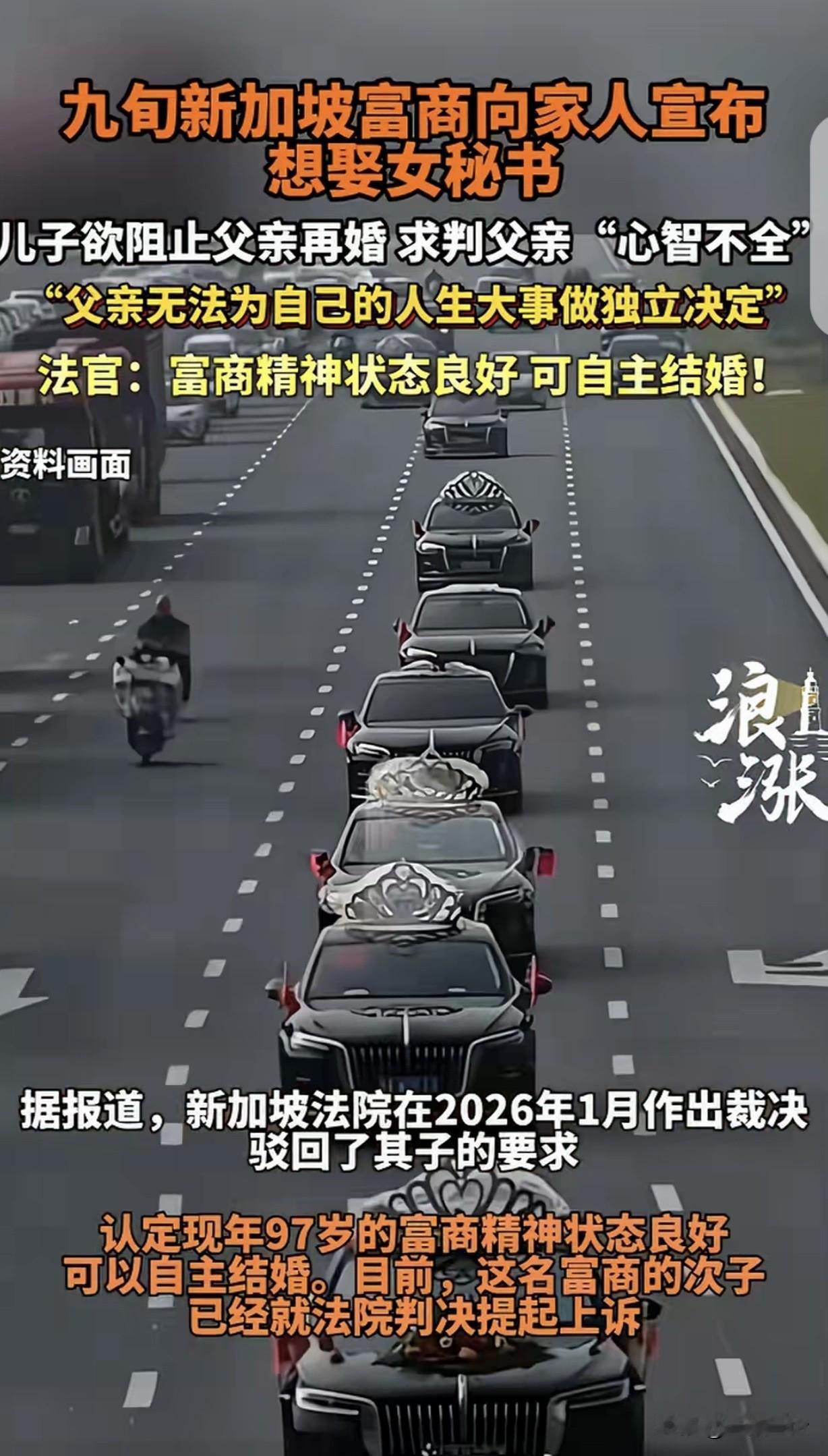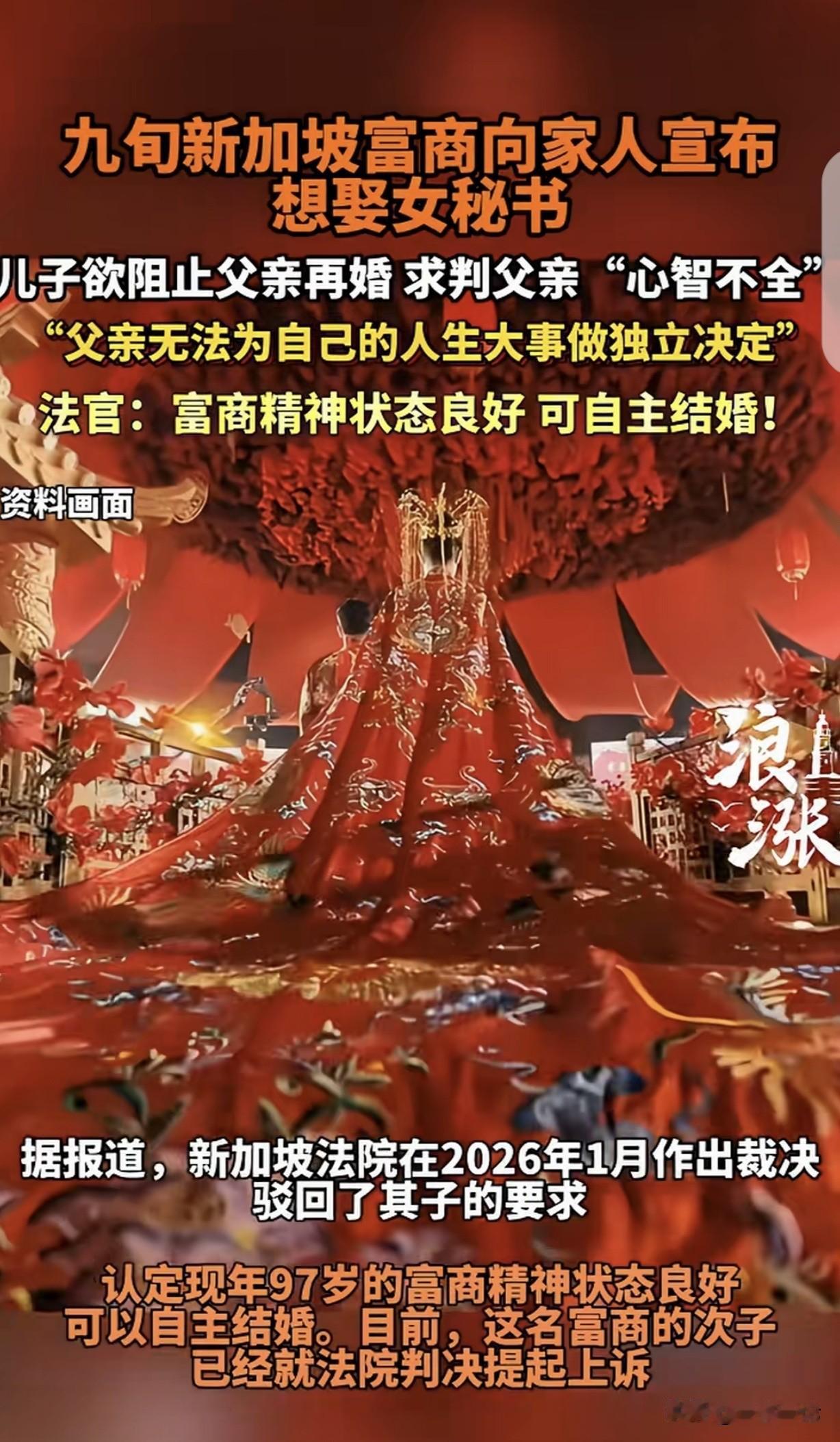 “男人只有挂墙上才消停?”一97岁有钱老人,突然向家人宣布,要把和自己保持50多年地下关系的女秘书扶正,可把儿子气坏了,愤怒的向法院申请,阻止父亲再婚,他觉得父亲心智不全,不能结婚,万万没想到,法院却认为,老人精神状态不错,可以自主结婚。儿子傻眼了,他不服,提起上诉。网友:秘书想炒个短线! 一97岁的富商,一辈子那也是风光无限,家里产业大得很。 老人身边有个女秘书,跟了他整整50多年,一直保持着地下关系,这事儿家里人多少都有点察觉,可谁也没敢多说什么。 这天,老人突然把全家人都叫到了一起,坐在客厅大沙发上,神情严肃地说他决定了,要把女秘书扶正,把她娶进家门。 这话一出口,就像一声炸雷在客厅里炸开了。 次子第一个就跳了起来,脸涨得通红,气呼呼地说老人糊涂,都多大岁数了,还搞这一出,这不是让人笑话嘛! 其他家人也纷纷附和,都觉得这事儿太荒唐了。 可老人态度十分坚决,他说,他和秘书在一起这么多年了,早就有了感情,他现在就想给她个名分。 儿子见劝不动父亲,心里又急又气,他觉得父亲年纪这么大了,说不定心智都不全了,怎么能结婚呢? 女秘书非要嫁给父亲,不可能因为爱情,说句难听的,父亲都土埋大半截的人了,说句不吉利的话,也许睡一觉第二天就醒不来了。 如果父亲对女秘书有感情,那就继续保持关系就好了,干嘛结婚?女秘书这是居心不良,对他家的家产虎视眈眈,想到时候,以父亲妻子的身份,分一杯羹。 于是,次子看阻止不了父亲,就一咬牙,直接向法院申请,请求阻止父亲再婚。 他在申请书里把父亲的情况写得清清楚楚,说父亲年事已高,思维可能不清楚,不能做出正确的决定。 法院受理了这个案子后,很快就安排了相关调查。 法官亲自来到老人家里,和老人聊天,观察他的言行举止,还找来了专业的医生给老人做精神状态评估。 经过一番仔细的调查和评估,法官发现老人虽然年纪大了,但精神状态很不错,思路清晰,表达也很有条理,完全有能力自主决定自己的婚姻大事。 很快,法院就做出了判决,认为老人可以自主结婚。次子听到这个结果,简直不敢相信自己的耳朵,他傻眼了,站在那里半天没回过神来。 次子心里那个气啊,他觉得法院太不公平了,根本没考虑他们家的情况。 他不服,决定提起上诉。他四处找律师,收集各种证据,就想着能在二审的时候翻盘。 有人说,男人至死是少年,估计只有挂在墙上才会老实!之前我朋友说过男人哪怕只剩一口气,他都还会找女人,那时我还当笑话。 保持五十多年地下关系,也七十多了吧,又不是找了个年轻漂亮的,之前可能花,这么多年应该是真感情了! 97岁老人要扶正女秘书这事儿,在网上闹得沸沸扬扬,儿子觉得女秘书是冲着家产来的,坚决反对父亲再婚,还闹上法庭。 从儿子角度看,他担心父亲被利用,害怕家产旁落,这种担忧并非毫无道理。 毕竟老人年纪大了,女秘书此时提出结婚,很难不让人怀疑她动机。 但换个角度,老人和女秘书保持50多年地下关系,要说没感情也不太可能。 也许老人就是想在生命的最后阶段,给陪伴自己大半辈子的人一个正式名分。 法院判决老人可以自主结婚,这是基于法律对公民婚姻自由的保护。 婚姻是个人权利,只要老人具备完全民事行为能力,就有权决定自己的婚姻大事。 儿子不能仅凭主观猜测就剥夺父亲的这一权利。 不过,儿子担心财产安全也情有可原,或许可以通过其他合法途径,如设立遗嘱信托等方式,来保障家庭财产的合理分配,而不是一味阻止老人结婚。 《民法典》第1046条规定,结婚应当男女双方完全自愿,禁止任何一方对另一方加以强迫,禁止任何组织或者个人加以干涉。 在此案例中,97岁老人精神状态良好,具备完全民事行为能力,其决定与女秘书结婚是自主意愿的表达。 法院认定老人可以自主结婚,体现了对公民婚姻自由权利的尊重与保护,任何组织或个人都不应非法干涉。 对于这件事,你怎么看? 欢迎关注@一案一论