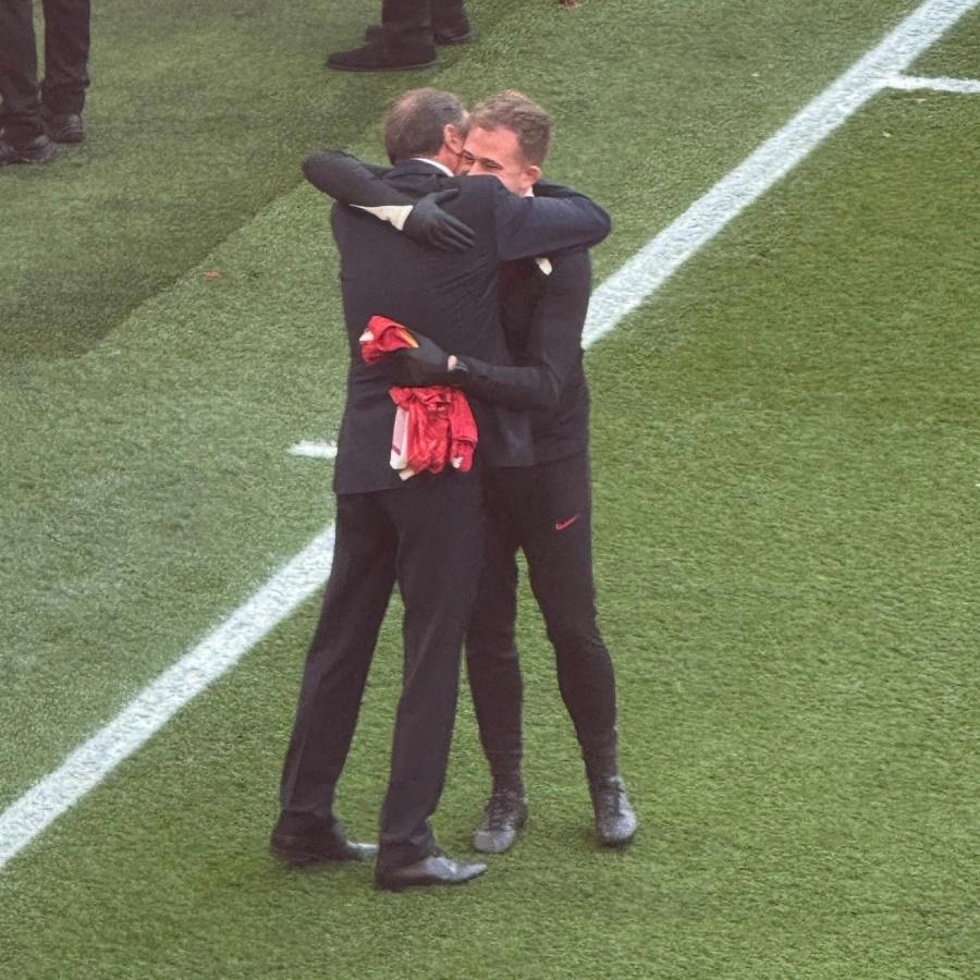 马克斯最后说:“我当时往下看,看到左角旗区附近,我爸正在做LFCTV的转播工作。我跑过去给了他一个拥抱。看台上有人拍下了我和爸爸在球场上相拥的照片,发给了我。这张照片是我和父亲所有照片里我最爱的一张,我真的太喜欢了。那是特别美好的瞬间。”