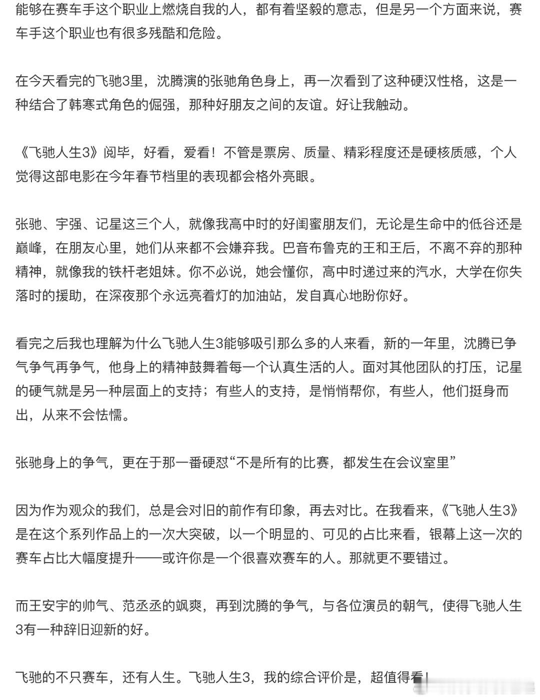 飞驰人生已经是种春节记忆了 2019年第一次看张驰在巴音布鲁克飞驰,今年又在电影院和他重逢。七年过去,春节看飞驰人生真的成了习惯,好像没看这一年就不完整。