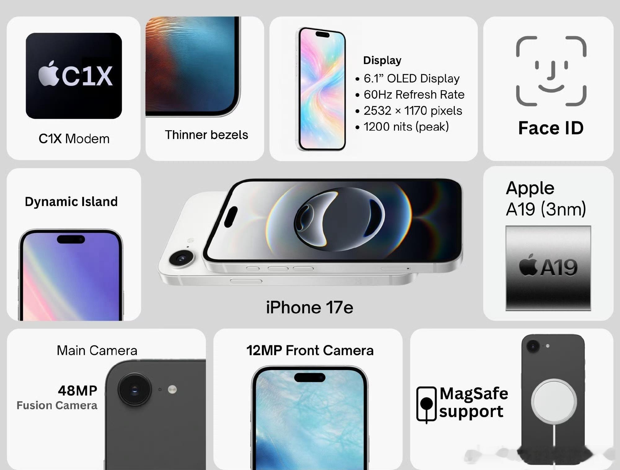 iPhone17e或将今日发布 不知真假坐等邮箱新闻稿新款iPhone17e应该是一款非常值得入手的基础款iPhone,只想要iPhone生态的用户还是可以考虑,预计具体配置包括 6.1 英寸 OLED 显示屏、60Hz 刷新率、灵动岛设计、搭载 A19 芯片、 4800 万像素融合摄像头等,售价预计:4499 元起,当然,等到618价格估计会更香