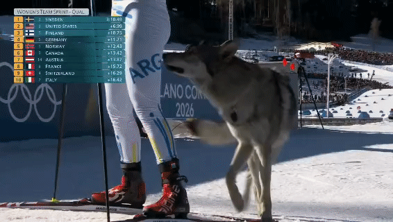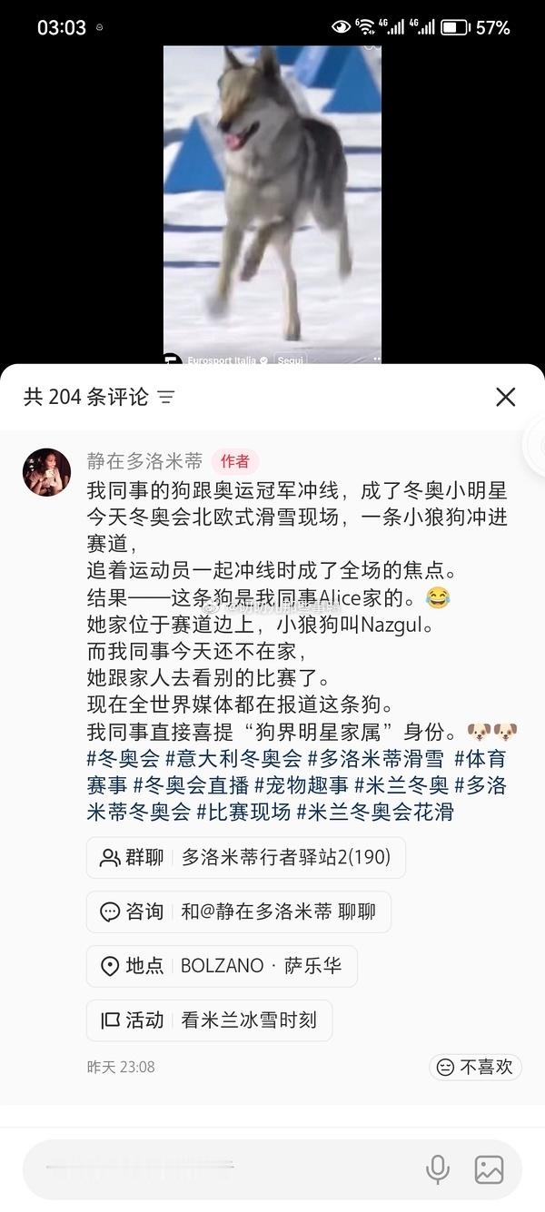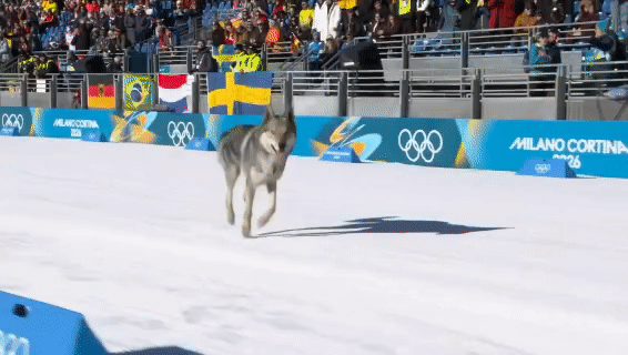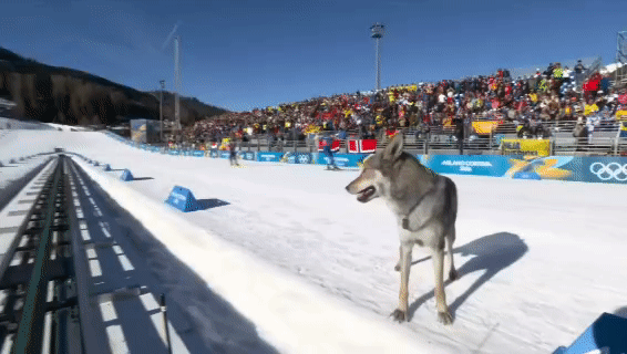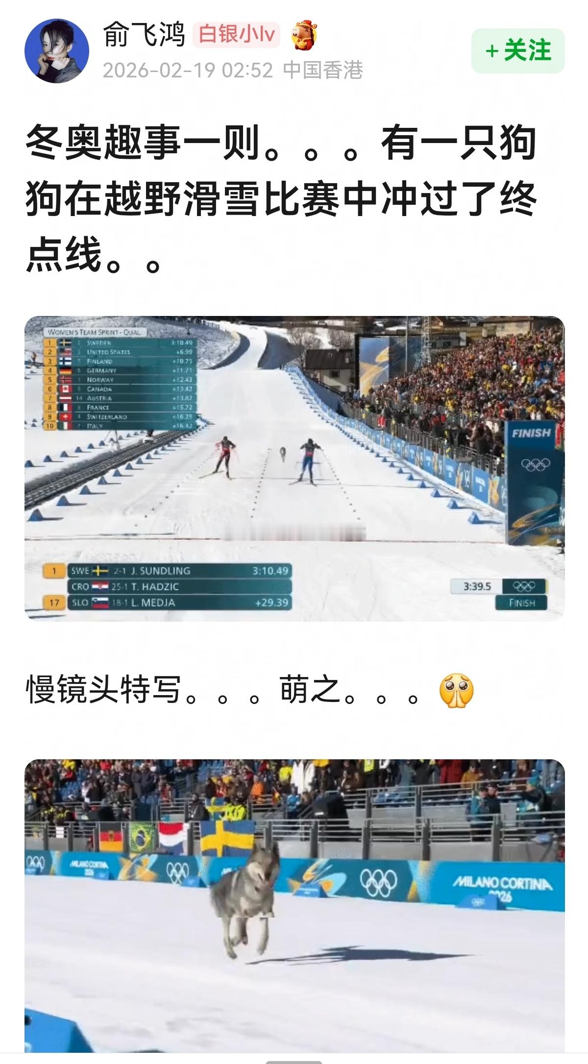 冬奥趣事一则,🈶一只狗狗在越野滑雪比赛中冲过了终点线~