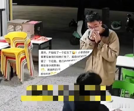 2月18日,广西玉林,两个小伙到店里吃饭,店主的小女儿对两个小伙说:“哥哥,新年好!恭喜发财!”一个小伙暖心的掏出一个红包递给小女孩,店主见状直接为两人免了单,临走时,另一个小伙又在桌子上留下了一个红包。 真好!被这温暖的一幕感动了![比心]这就是中国人的礼数,最好的年味不是逛大集买年货,不是贴春联放烟花,不是吃饺子看电影,而是人与人之间的温柔相待。[心]