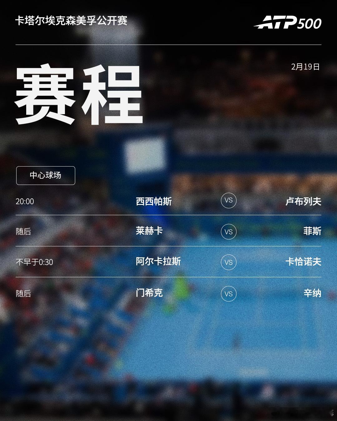 ⭕️ ATP500卡塔尔埃克森美孚公开赛📍卡塔尔·多哈🎾 四场四分之一决赛轮番上演,阿尔卡拉斯、辛纳、卢布列夫等出战。