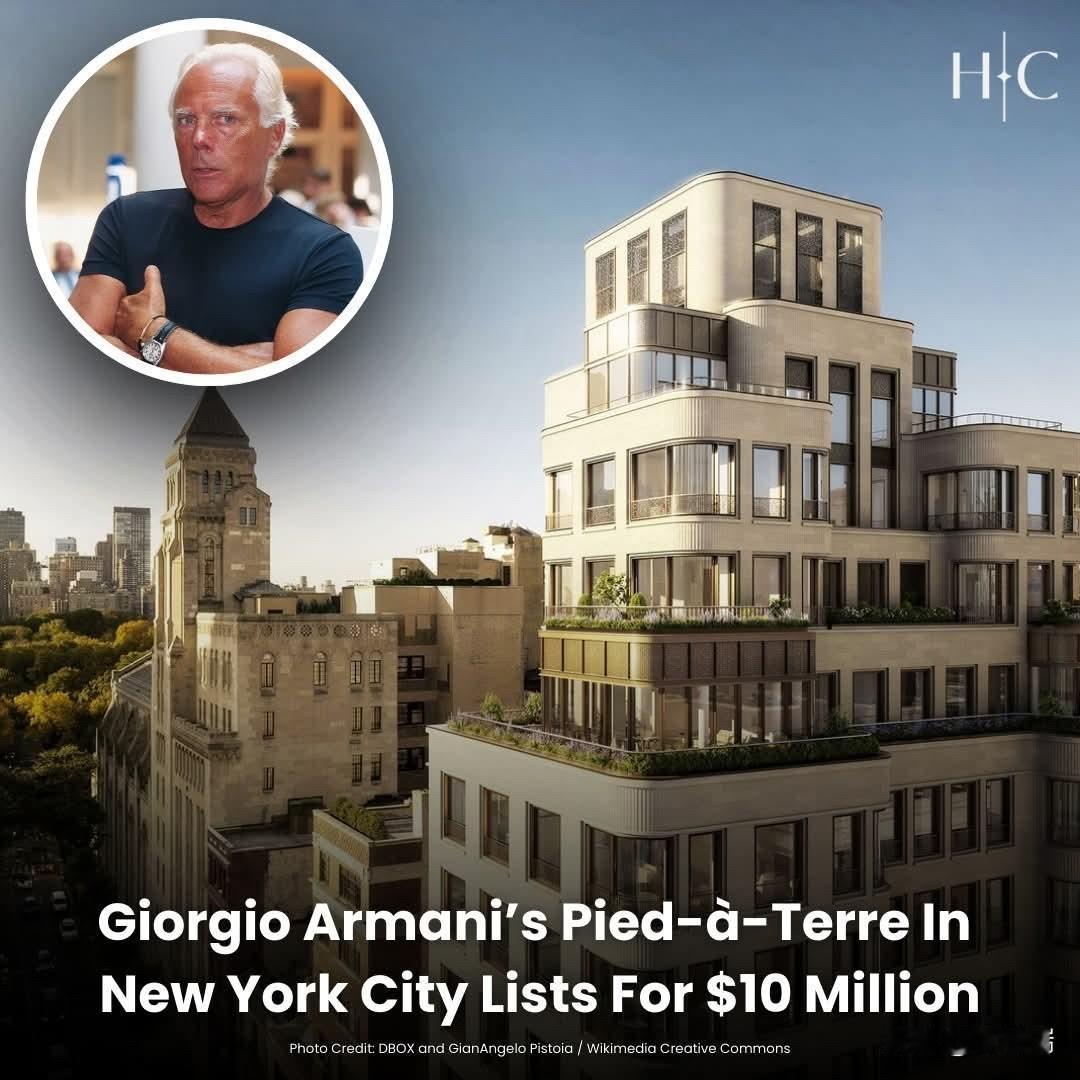 著名意大利时装设计师乔治·阿玛尼 (Giorgio Armani) 位于纽约曼哈顿上东区的私人住宅正在出售。 房产核心信息 挂牌价格: 该公寓目前的挂牌价格约为 995 万美元(约合 1000 万美元)。 具体位置: 位于麦迪逊大道 760 号 (760 Madison Avenue) 的“乔治·阿玛尼住宅区”(The Giorgio Armani Residences) 大楼内。 房屋状况: 这是一个从未有人入住过的全新单位。尽管这是阿玛尼亲自构思的私人度假寓所,但他于 2025 年 9 月以 91 岁高龄去世,未能搬入。 公寓详情 规格: 面积约为 2,005 平方英尺(约 186 平方米),包含 2 间卧室和 2.5 间浴室。 内部设计: 室内风格体现了阿玛尼标志性的极简主义和优雅品味,配备了定制的白橡木镶木地板、10 英尺高的天花板以及 8 英尺高的超大窗户。 定制配套: 厨房由意大利品牌 Molteni 为阿玛尼量身定制,浴室则使用了巴西石英岩和 Azul Macaubas 大理石。 大楼特色 该建筑由 COOKFOX Architects 设计,由 SL Green Realty 开发,是一栋 12 层的混合用途建筑。 底层设施: 建筑的 1 至 3 层设有乔治·阿玛尼旗舰精品店、Armani/Casa 家居店和 Armani/Ristorante 餐厅。 住户权益: 公寓住户可以使用健身中心、水疗室、由 Armani Ristorante 提供服务的禅意茶室,以及摆放有 Armani/Casa 家具的图书馆酒廊。