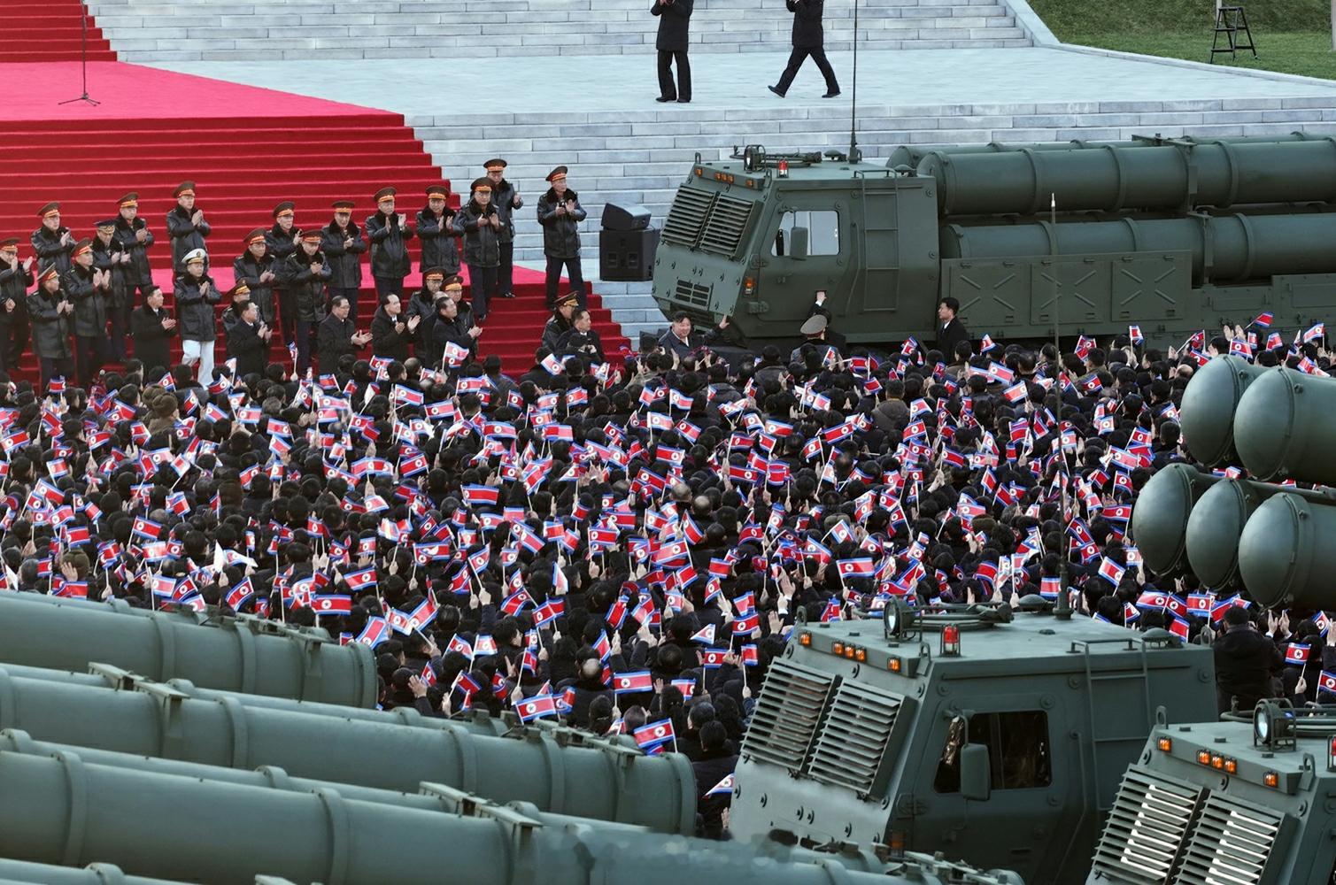 军工部门工人阶级献给朝鲜劳动党第九次代表大会的600毫米大口径火箭炮赠送仪式隆重举行
