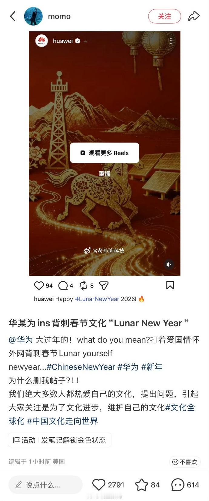 原来华为只是把中国春节翻译成了Happy Lunar New Year