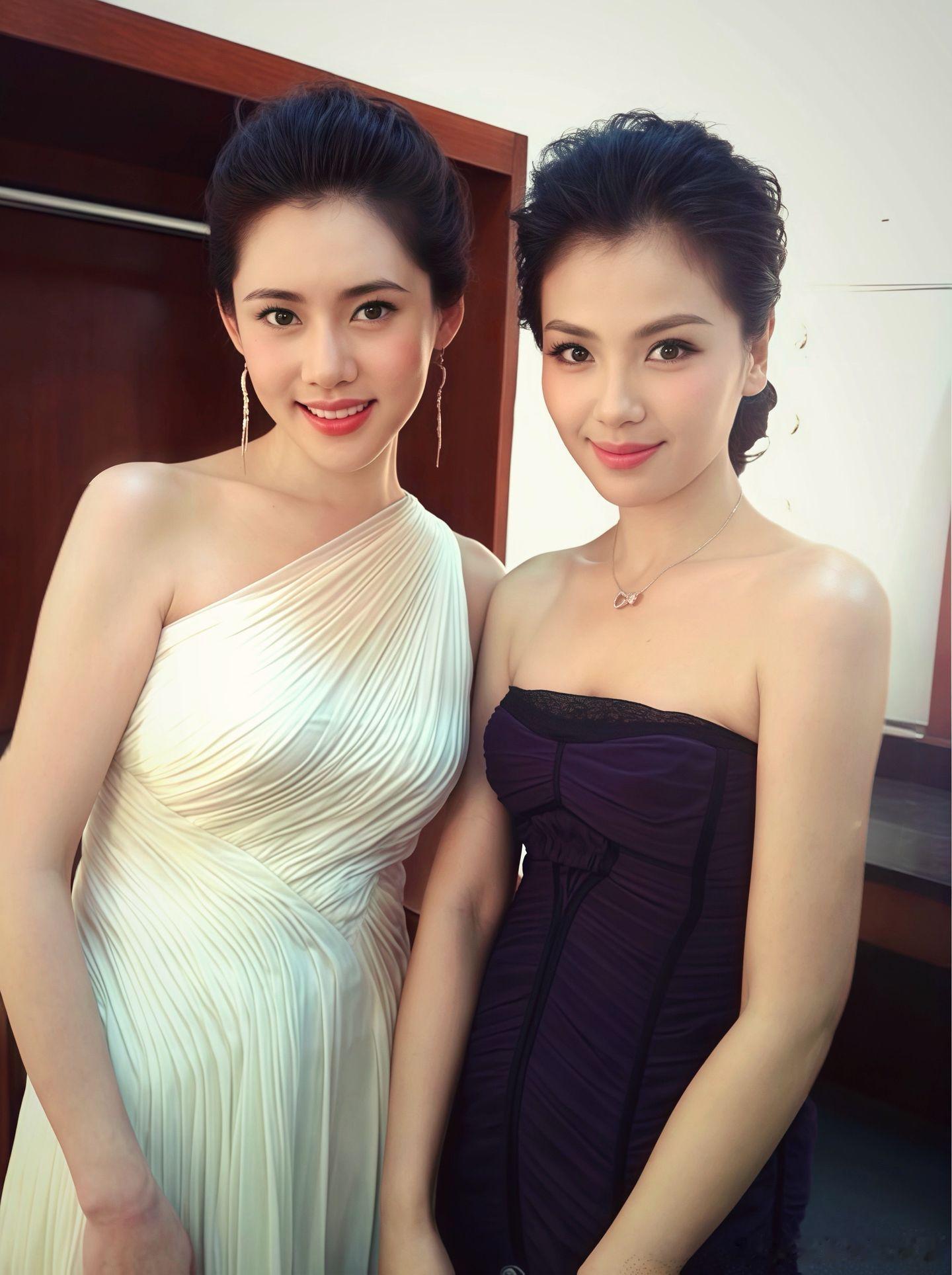 张天爱跟素人合影,胯真的好宽,大宅院似的