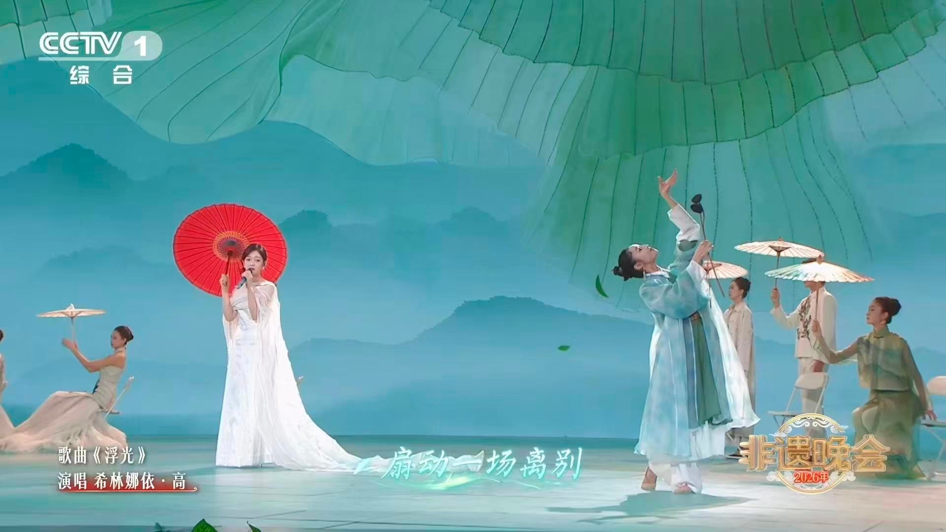 7米裙摆层层染色,《千里江山图》穿在身上缓缓转动,这舞台美学直接封神!以为是山没想到是7米变色长裙希林娜依高唱出了中式美学的震撼
