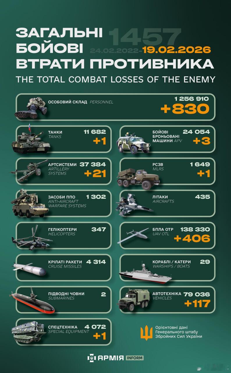 截至2026年2月19日“超级大国”俄罗斯损失战报