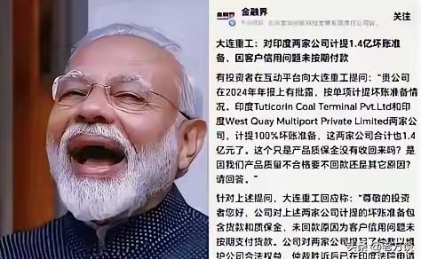 大连重工在印度的 1.4 亿账单做好了坏账的准备,难道就以这样的方式结束他们在印度的投资吗,难道就如此心甘情愿把 1.4 个亿打水漂了吗?难道就没有人为此负责吗?当初是谁决定在印度投资,是谁决定与印度进行生意往来的?难道就没有人为之承担责任吗?1.4 个亿在国内可以养活多少工人,就这样送给了印度阿三了!心有不甘啊! 这1.4亿不是大风刮来的,是企业辛辛苦苦做设备、跑项目挣来的血汗钱,设备运到印度装好调试完,对方正常用着,到付钱的时候就开始耍无赖,摆明了就是想白拿白用。大连重工也没惯着,走国际仲裁打官司,明明赢了官司,拿着生效裁决去要钱,印度那边直接搞破产重整,当地法律一护短,海外债主的钱就被晾在一边,想执行都没地方下手。 明摆着是对方恶意赖账,用破产当挡箭牌躲债,咱们企业明明占理,却拿不回一分钱,这种哑巴亏换谁都咽不下去。当初做海外投资决策的时候,就没好好评估印度的法律风险、信用风险吗,就没做足风控和回款保障吗,这么大一笔钱投出去,连基本的安全兜底都没做好,最后只能计提坏账,实在说不过去。 1.4亿放在国内能给多少工人发工资、能投多少生产线、能做多少技术升级,就这么被印度企业赖掉,谁看了都心疼。国企的资产是国家和老百姓的,不是随便能拿去交学费的,每一笔投资都要对结果负责,不能亏了就不了了之,该追的责任必须追,该复盘的问题必须复盘。 以后中企再去印度做生意,真得睁大眼睛,别再被表面的市场忽悠,合同、担保、法律保障一样都不能少,不能再让国家资产白白被坑。吃了这么大的亏,总得有人给个说法,总得吸取教训,不能让类似的事再发生。 各位读者你们怎么看?欢迎在评论区讨论。