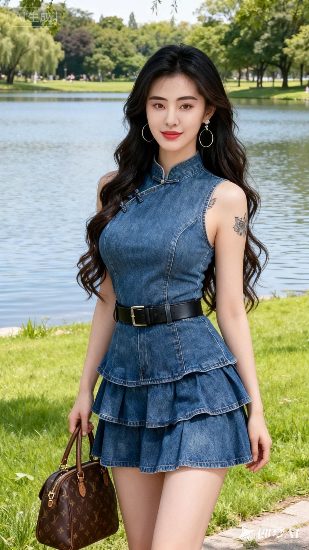 夏日清新穿搭,牛仔裙搭配大耳环,轻松出街!