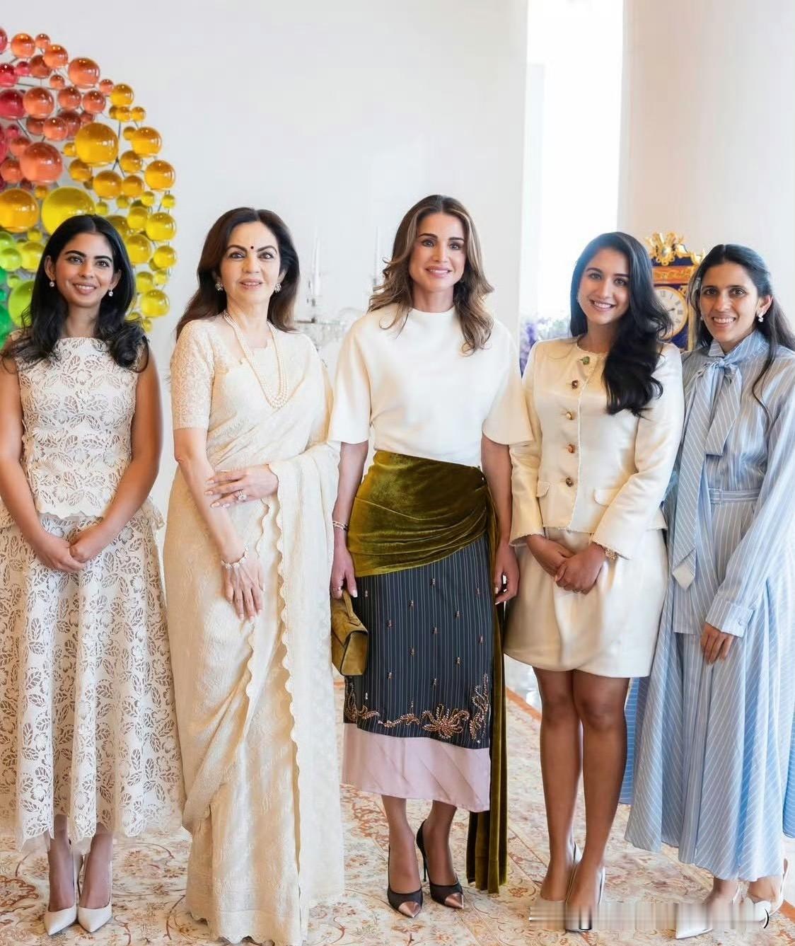 拉尼娅王后访问印度,印度首富夫妇在孟买热情迎接!在场的还有首富的子女们!