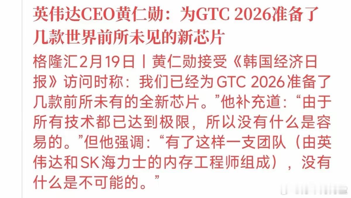 美股科技股的下一个“超级催化剂”来了! 当市场还在争论AI有没有泡沫时,黄仁勋直接甩出了一张明牌: 3月GTC大会,见证“前所未见”的奇迹。