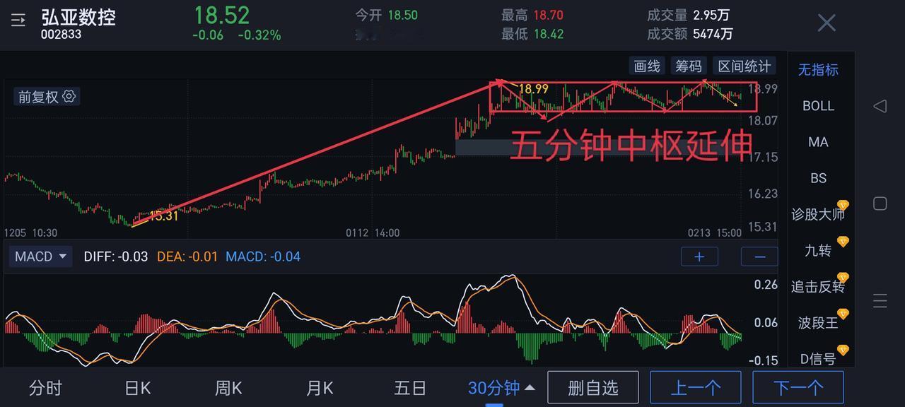 "弘亚数控"002833,多级别"缠论"走势结构分享。图中黄色箭头属于待完成走势。