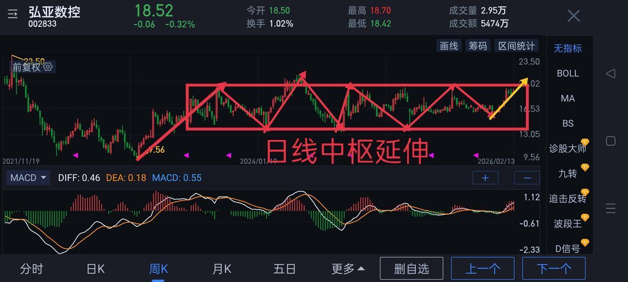 "弘亚数控"002833,多级别"缠论"走势结构分享。图中黄色箭头属于待完成走势