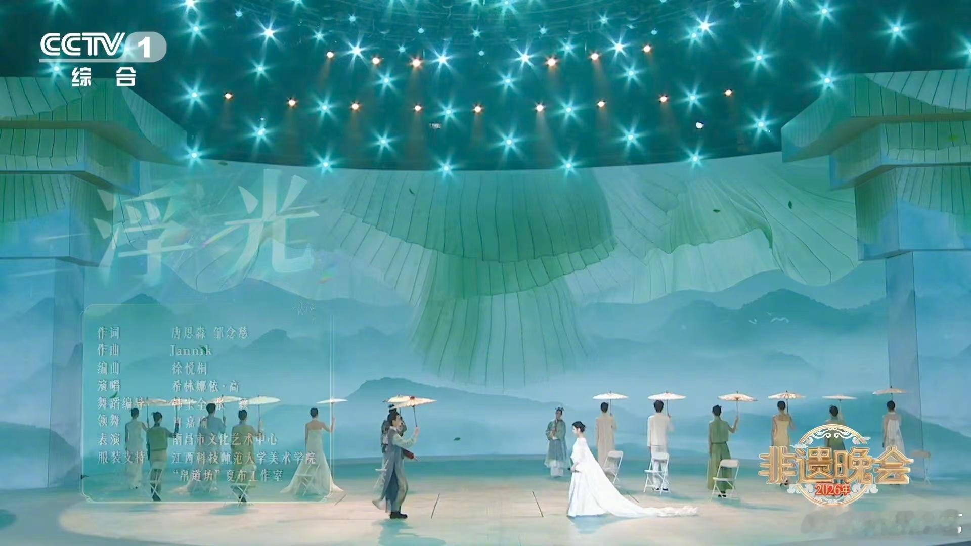 以为是山没想到是7米变色长裙这才是中式美学的顶级浪漫!《浮光》舞台暗藏玄机,南昌清音婉转,纸伞夏布摇曳,再加上7米裙摆的非遗染色工艺,每一帧都是流动的国宝。原来最美的风景,真的可以穿在身上。非遗晚会