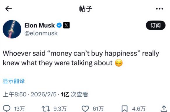 不幸福,马斯克的烦恼。 是的,你没听错,作为世界首富,坐拥身家8520 亿美金,远超第二名拉里·佩奇约2810亿美元,马斯克竟然也有烦恼。 这句话不是随口感慨,而是马斯克当下生活最真实的写照,它清晰表明,马斯克过得一点都不如意,甚至可以说,他早已被烦恼缠身,毫无幸福可言。 很多人都想不通,马斯克手握如此巨额财富,在美国商界地位显赫,连白宫都能随意进出,怎么会有解不开的烦恼。 大家总觉得,有钱就能解决所有问题,可马斯克的经历告诉我们,有些遗憾和烦恼,再多金钱也填补不了。 最先让马斯克难以释怀的,就是他一路坎坷的感情生活,这也是他直言“不幸福”的核心原因之一。 马斯克的首任妻子是加拿大作家贾丝廷,两人2000年走进婚姻,一起养育了5个儿子,本以为能相伴一生,却在2008年走到了离婚的尽头。 离婚后不久,马斯克就和英国演员塔露拉·赖利结缘,两人2010年首次结婚,短短两年就宣告离婚,18个月后又选择复婚。 这段兜兜转转的感情,终究没能熬过现实的考验,塔露拉·赖利于2016年再次向法庭提出离婚,两人彻底分道扬镳,且没有孕育子女。 几次失败的婚姻,让马斯克对爱情渐渐失去信心,他曾在访谈中坦言,幸福的两大要素是爱情和热爱的工作,缺少任何一项,都只能获得一半的幸福。 如今的马斯克,虽然依旧掌控着庞大的商业帝国,却始终没能拥有一段稳定的感情,孤独感早已成为他生活的常态。 除了感情的遗憾,马斯克的商业帝国近期也麻烦不断,让他承受着巨大的压力,进一步冲淡了财富带来的底气。 特斯拉作为他商业版图的核心,近期正遭遇前所未有的危机,2025年全年销量同比下降9%,第四季度跌幅扩大至16%,年度收入首次出现萎缩,年销量还被比亚迪反超。 为了扭转颓势,马斯克今年1月宣布停产Model X和Model S两款车型,缩减产品线,可即便如此,特斯拉的销量颓势依旧没有得到缓解。 更让他头疼的是,特斯拉正经历大规模高管离职潮,自2024年4月以来,已有超过13位核心领域高管相继离职,其中不乏任职十年以上的元老。 这些高管深度参与过特斯拉自动驾驶、电池研发等核心项目,他们的离开,给特斯拉的发展带来了不小的冲击。 他重金押注的xAI赛道,处境更为艰难。这家成立不到三年的公司,已有6位联合创始人离职,占最初12人创始团队的一半。 有离职的联合创始人坦言,xAI高强度的工作节奏,让自己的免疫系统受损,最终无奈选择离场,这也从侧面印证了马斯克高压的管理风格。 马斯克嘴上说着“没有一个人走了会让我后悔”,可公司内部持续的人员动荡,加上业务发展的困境,其中的心酸,只有他自己最清楚。 他曾说不要直接追逐金钱,要成为净价值创造者,可如今他拥有了用不完的财富,却没能拥有自己想要的幸福。 马斯克的烦恼,从来都不是“没钱”,而是有钱之后,依旧留不住爱情、挡不住困境。 这位世界首富用自己的经历,给所有人上了一课:金钱能买到物质享受,却买不来内心的安宁,更买不来真正的幸福。