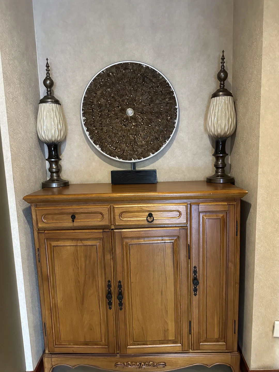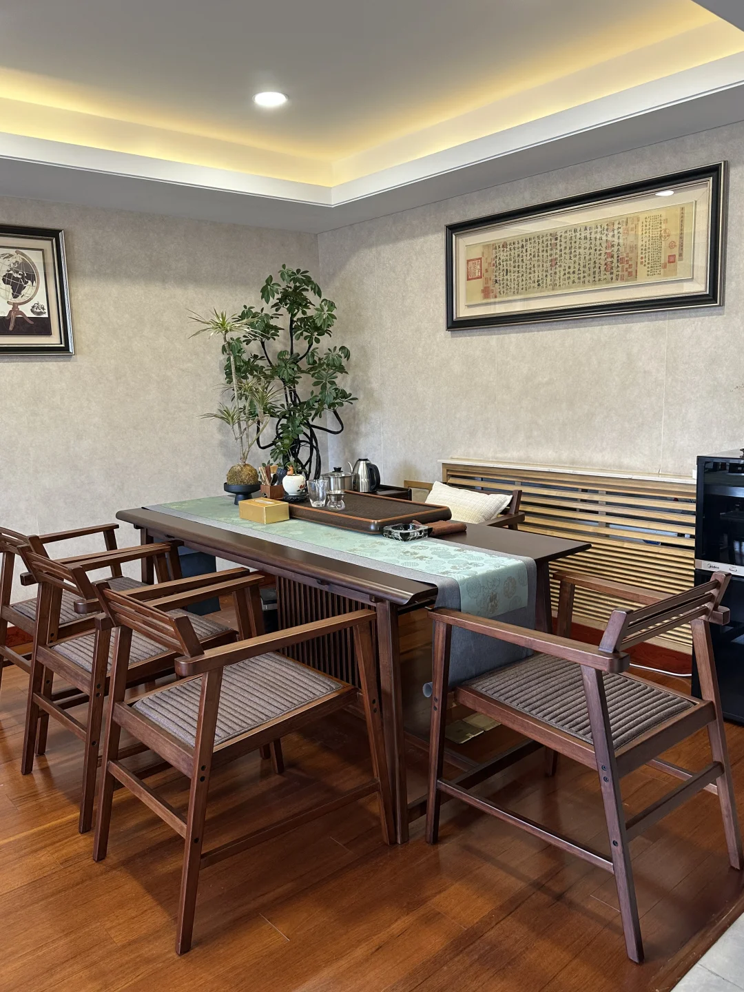🌿 环境:中式美学拉满,拍照超出片,一进门就被治愈了!整体是新中式风格,木质茶桌搭配素雅软装,墙上挂着书画作品,角落的绿植和孔雀羽装饰,每一处细节都透着雅致。