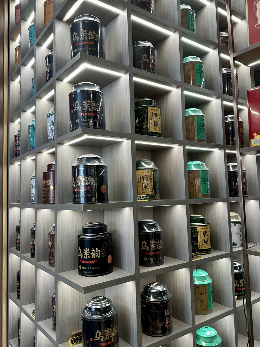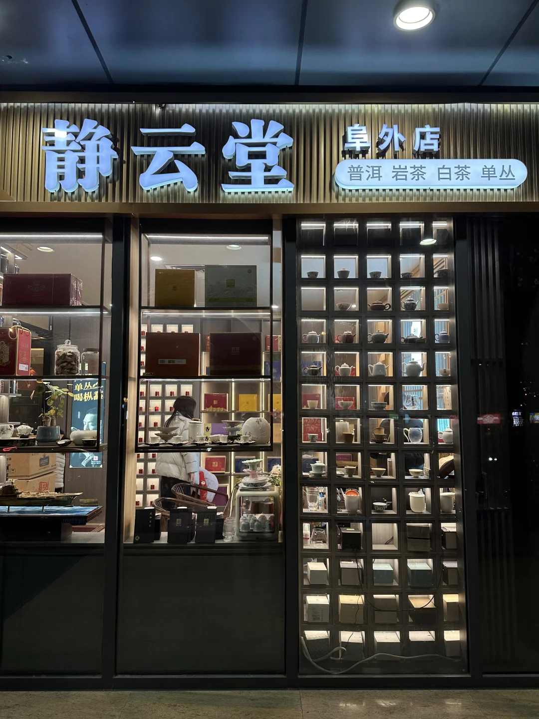 店里主打普洱、岩茶、白茶、单丛,茶罐陈列得整整齐齐,像个小型茶叶博物馆。