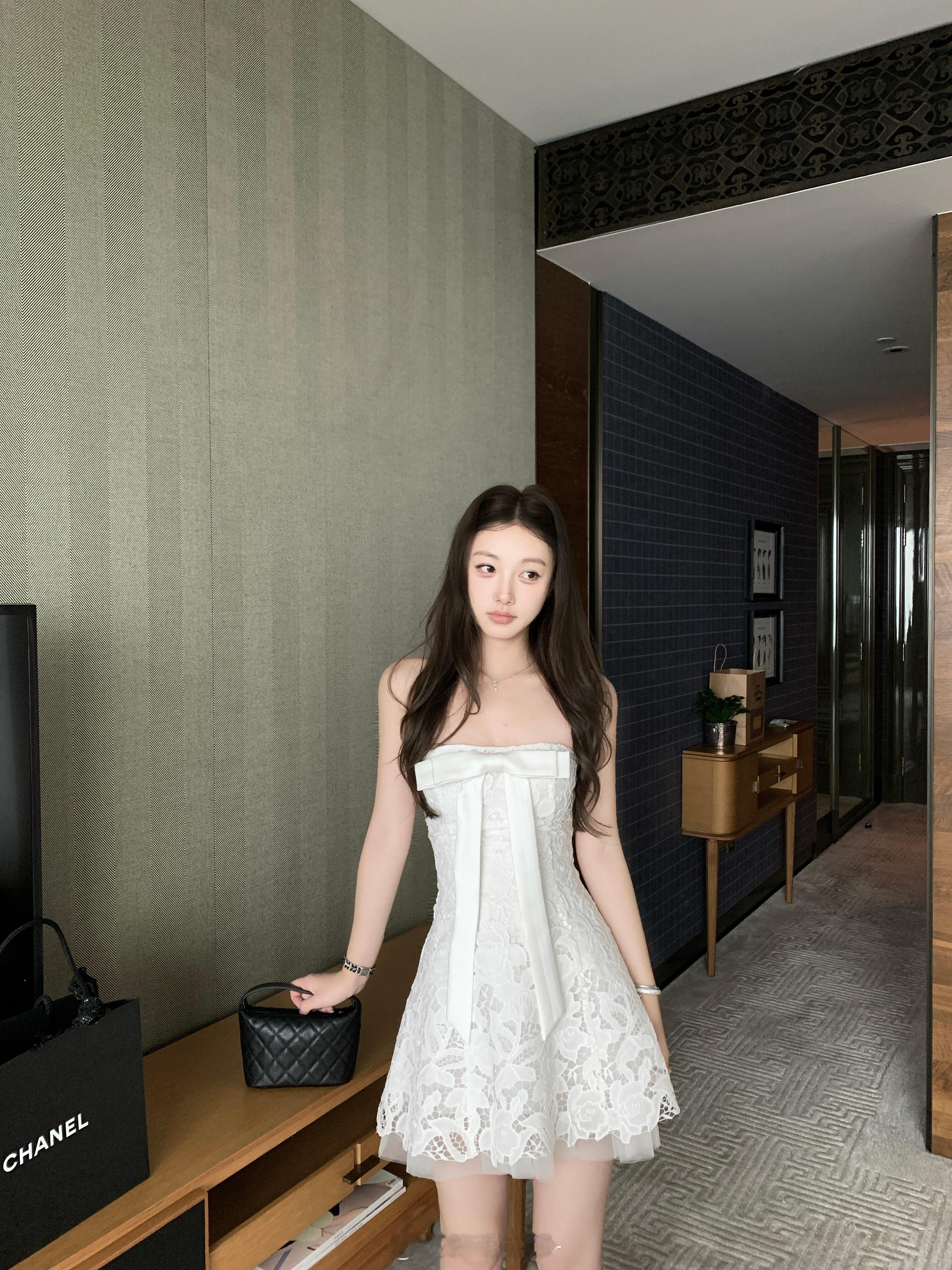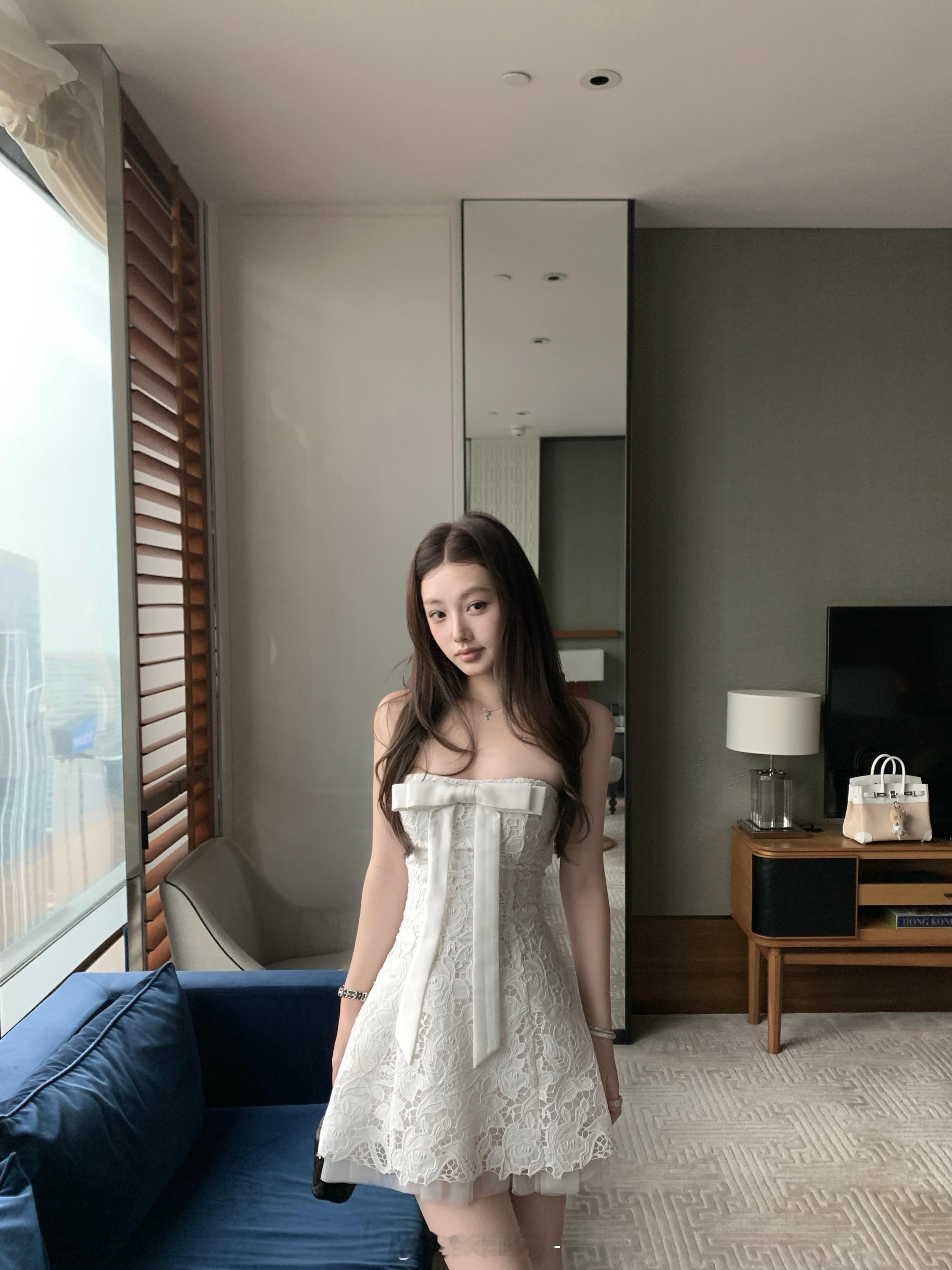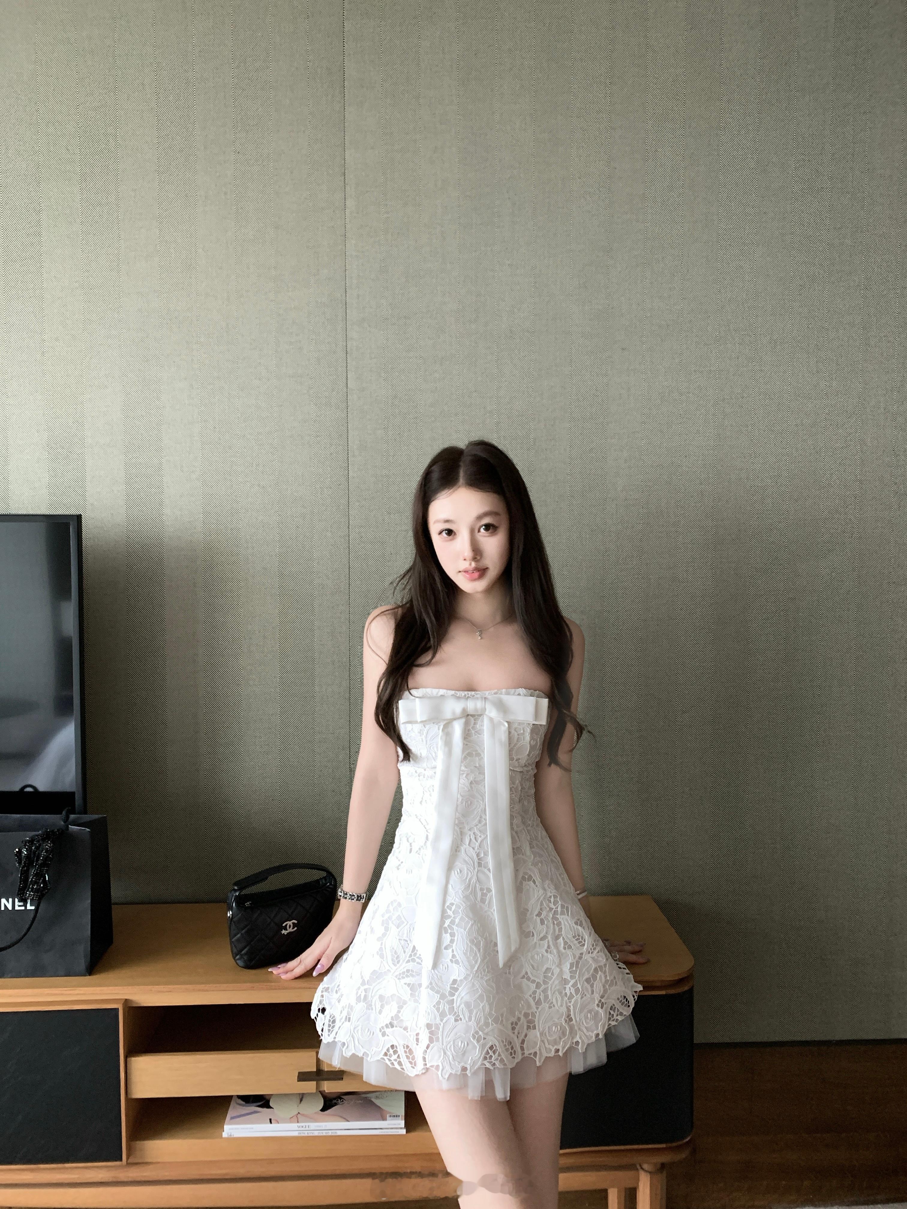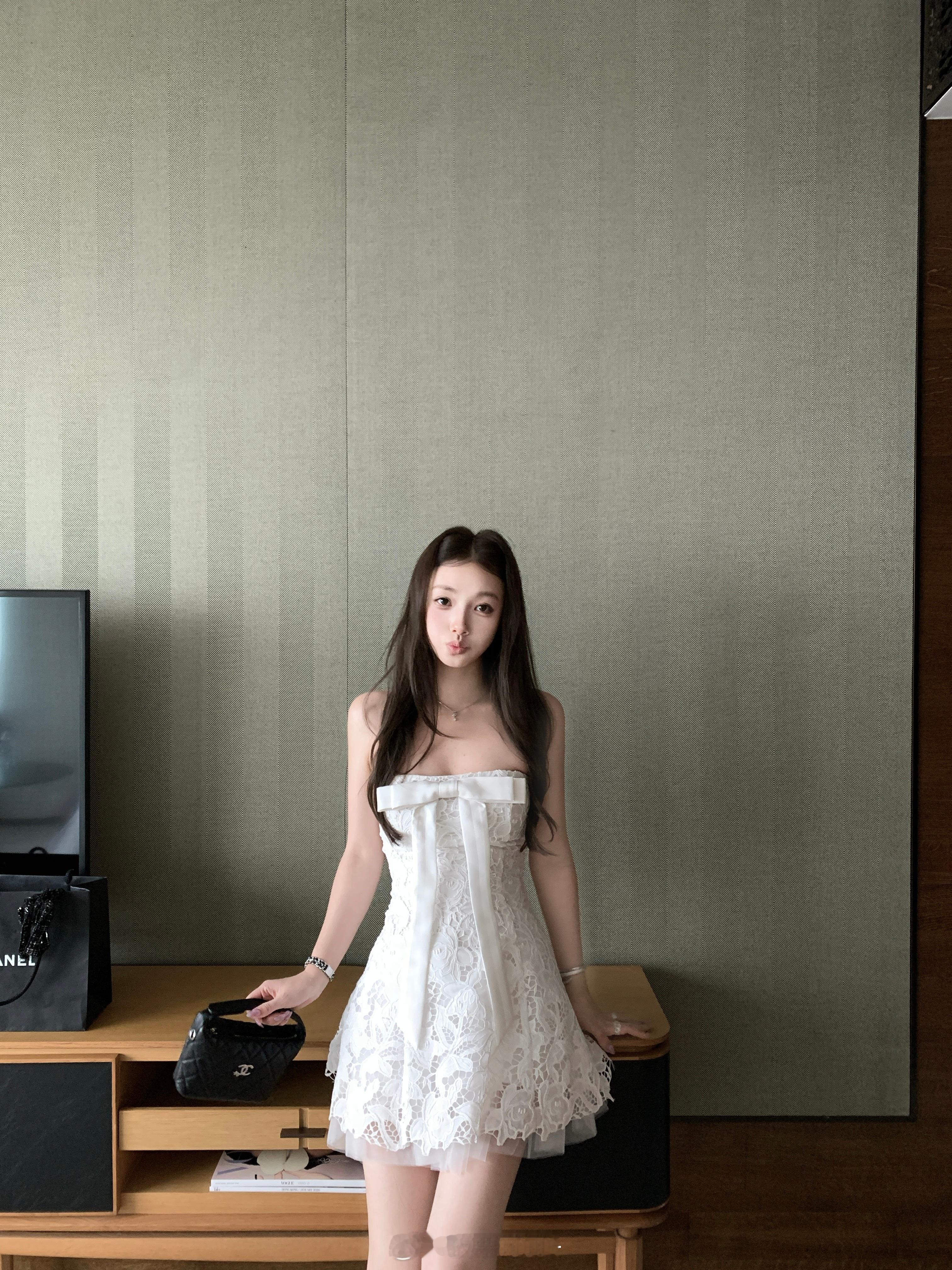 板栗可可Bankelili2/26/20:00🐇美到失语!!!蝴蝶结+一字抹胸!!重工蕾丝提花网纱的初恋感小白裙~不论日常约会还是参加生日宴会 氛围感妥妥拿捏都是一眼吸睛的迷人存在!!👍🏻🍎揪3️⃣50⭕️⭕️~