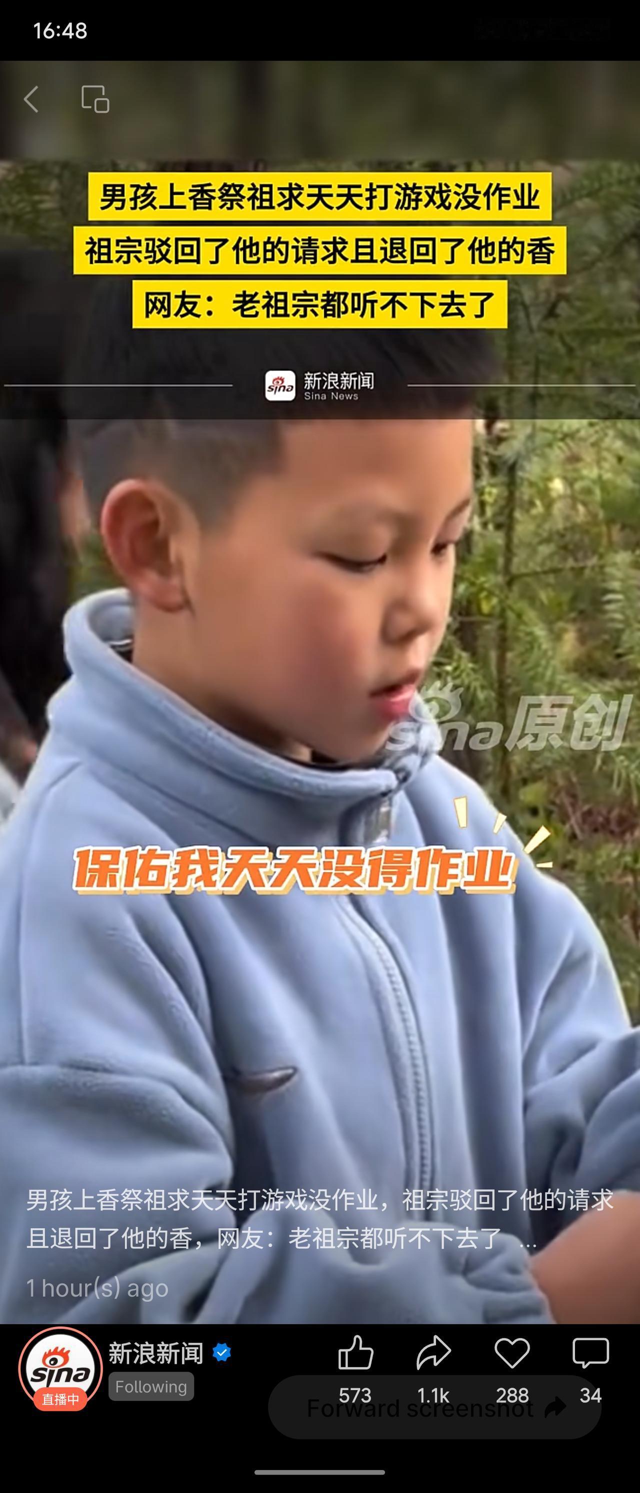 男孩上香祭祖,许愿“天天打游戏没作业”,结果被香灰烫手,香也没插住。网友笑评:祖宗听不下去,当场驳回请求——这届孩子太难带了!