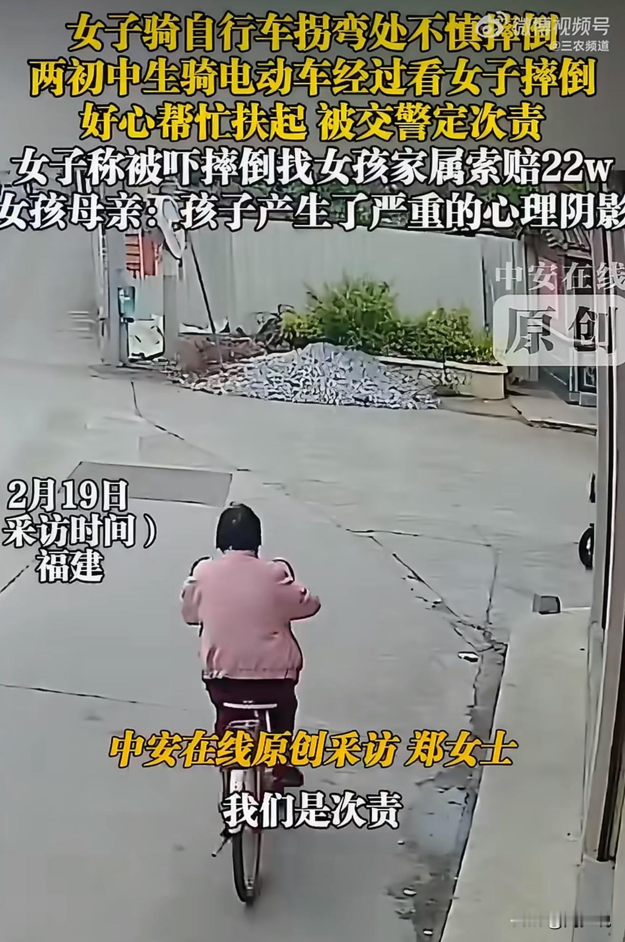“寒心!”福建这一幕,让无数人看得又气又心疼。近日,两名初中女生骑车路过,见到一名女子摔倒,主动上前好心扶起摔倒女子,没碰撞、没剐蹭,没想到,对方以“被吓到摔倒”为由索赔,交警出具次责认定。孩子母亲说,原本热心的娃,如今留下严重心理阴影,连出门都害怕。 这事在网上曝光之后,引发网友热议。有网友当即表示:“善良不该被这样消耗,以后谁还敢教孩子做好事”? 在周少看来,这不是简单的纠纷,更戳中家庭教育与社会信任的痛点。我们教孩子向善,却难挡个别不公与讹诈带来的伤害,属实让人寒心。 当然,这事也给所有家庭提醒,教育孩子有爱心的同时,不妨教会他们保护自己:先留证、再求助,不盲目冲动。 更希望法律与舆论能站在善意这边,别让孩子觉得“做好事会倒霉”。守护少年的纯粹,就是守护社会的温度,别让一次寒心,凉了几代人的热心肠。#寻美三湘#