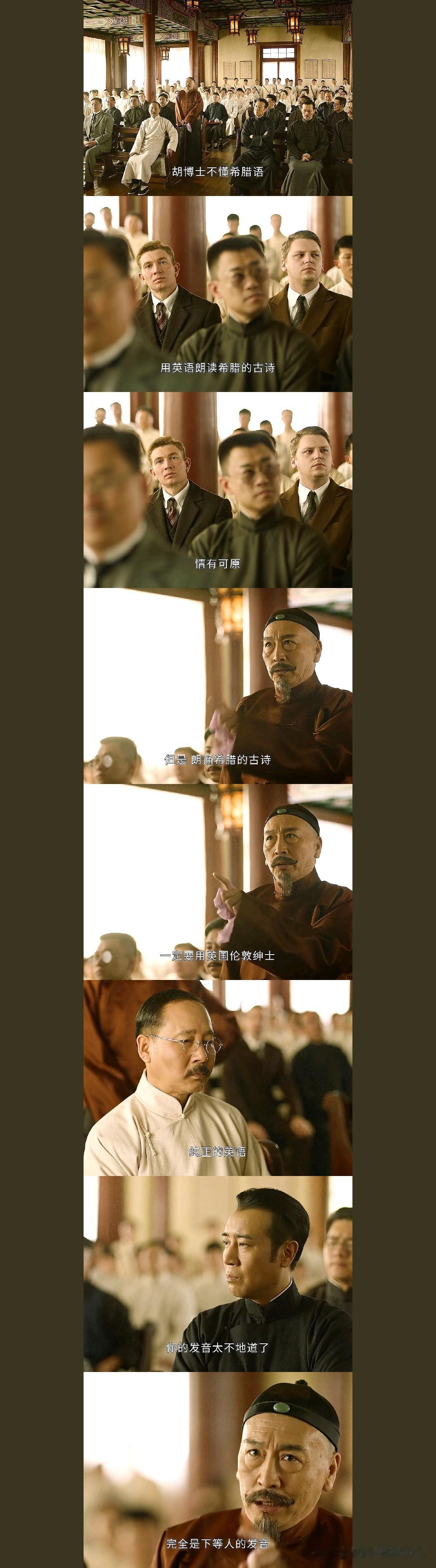 《觉醒时代》中令人印象深刻的是辜鸿铭逮着胡适骂了三次。 第一次是胡适去拜见辜鸿铭,辜鸿铭骂胡适崇洋媚外,数典忘祖。 第二次是胡适请辜鸿铭吃饭,辜鸿铭说胡适不配上桌,让他坐门口去了。 第三次是胡适当着辜鸿铭的面在北大装逼,用英语念了一句《荷马史诗》里的内容。辜鸿铭听不下去。直接用希腊语念了一句,还问胡适这是什么意思。胡适答不上来,辜鸿铭还追着胡适杀。