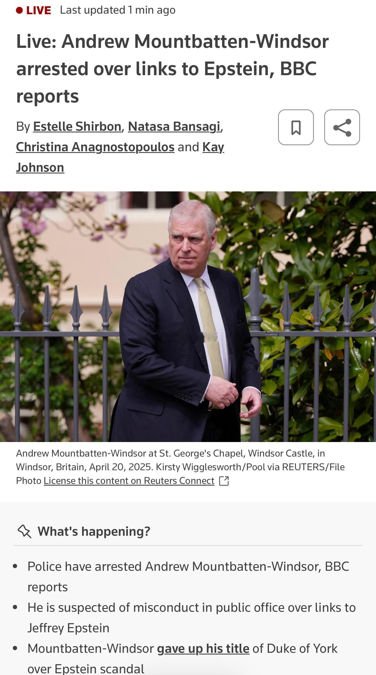 英国前王子安德鲁被捕👇