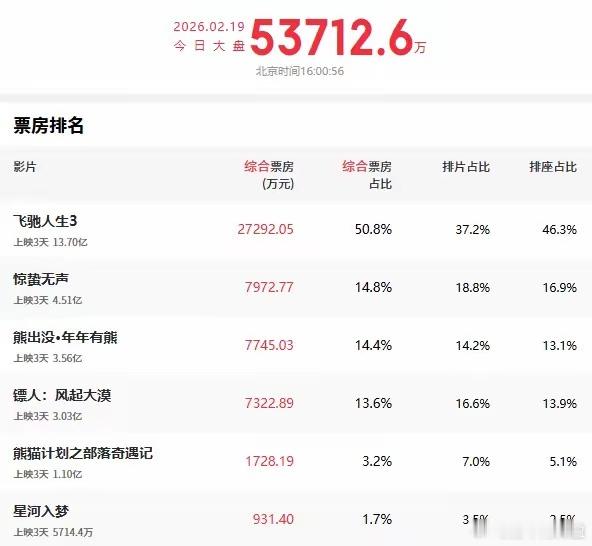 春节档电影观察二十三:飞驰人生3同期票房超哪吒2,尤其是首日票房6.40亿,比哪吒2首日的4.87亿多出了不少,可以说飞驰人生3开局开了一个好头。