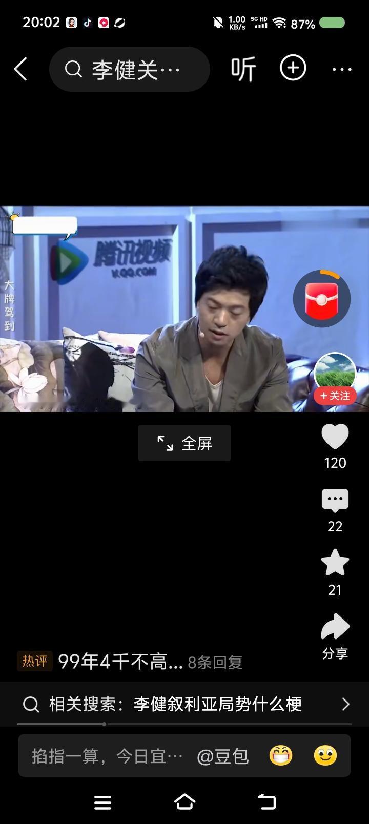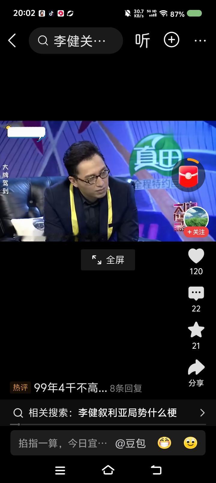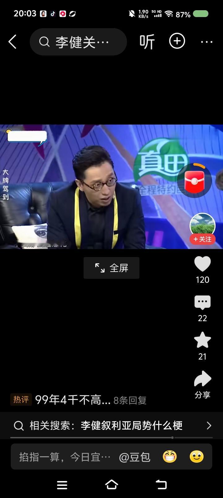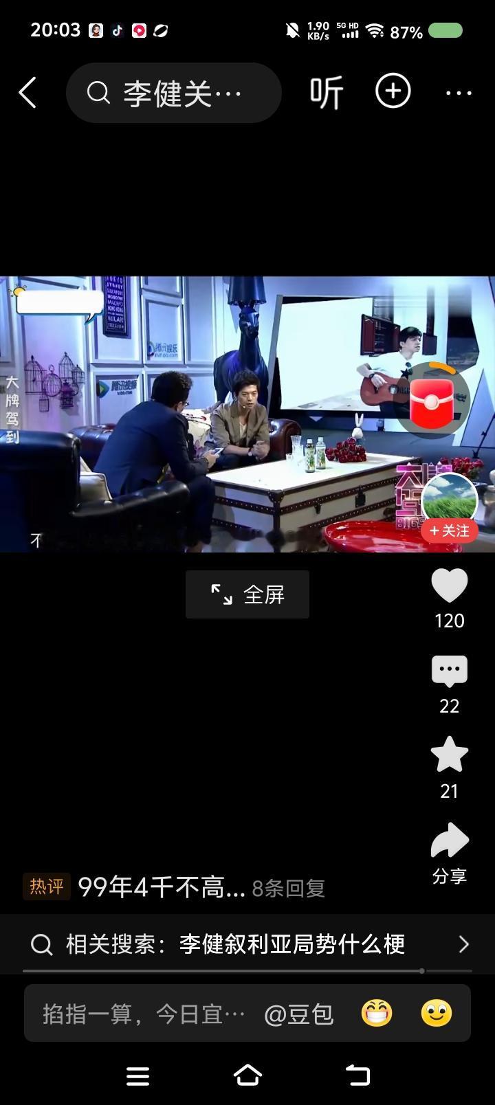 李健说—— 节目里,李健说:“我九八年大学毕业,九九年工资一月四千。今天物价涨了这么多,很多人没赚到四千,很多大学生毕业工资比这还低。所以年轻人面临的问题更严峻。” 主持人问:“你给年轻人的意见是不要那么理想化?” “不是,我觉得还是应该关注眼下的生活。” 点评: 如果经济、社会发展不能为社会带来新的行业、更多的就业,那迟早会出大问题;如果科技仅仅让人从岗位上解放了,使他们沦为失业一族,那科技就是吃人的怪物。 人人有自己乐于做、擅长做的工作,社会才会更美好。