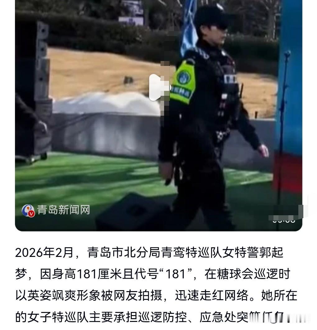 人能不能火?这人要长得有特点,要么高,要么帅,要么飒,要么温柔要么可爱。 2月19日热搜,青岛超飒“181女警”小姐姐出圈。 这位女特警身高1米81。 这就很出圈了,而且还很飒,那就更出圈了。 面对路人的合影请求,她也是害羞到抿嘴唇摸鼻子。 这种反差感就更吸引人了。