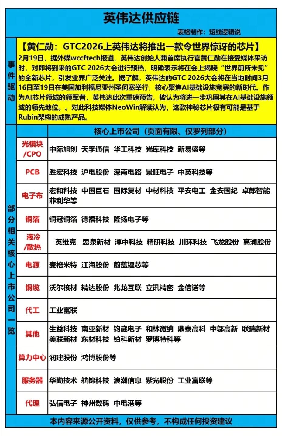 英伟达供应链一览表!!!