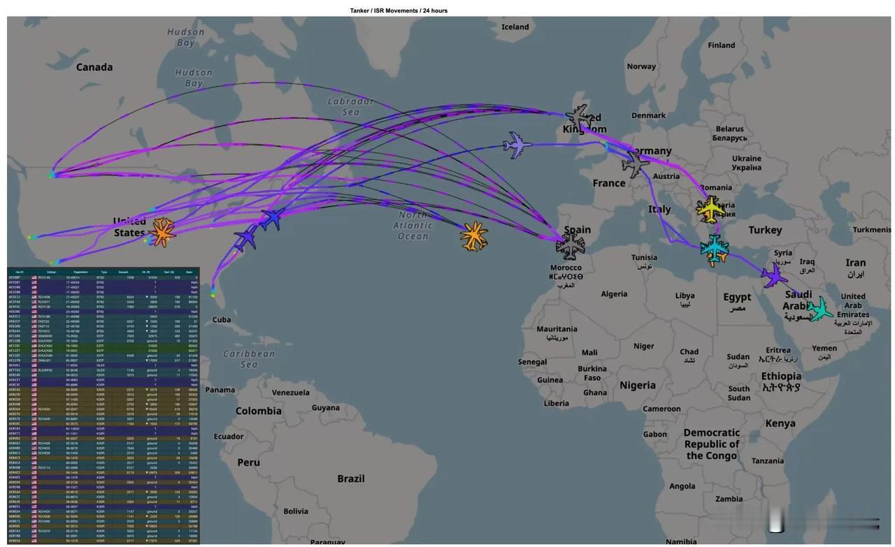据 CNN 报道,美国已准备在本周末(周六至周日)对伊朗发动袭击。美军已做好对伊朗发动打击的准备,但唐纳德·特朗普总统尚未做出最终决定。 他正在与顾问和盟友讨论可能的行动方案,权衡所有利弊。 《每日电讯报》:一位华盛顿官员告诉该报,“未来几周内与伊朗开战的可能性高达 90%”。 《华尔街日报》:特朗普总统被告知了针对伊朗的几种军事选项; 所有这些选项都旨在对伊朗伊斯兰政权及其恐怖傀儡造成最大程度的打击。 这意味着“菜单”(目标名单)可能包括胡塞武装、真主党以及其他受伊朗支持的武装团体。 以色列媒体报道称,根据以色列国防军(IDF)的说法,如果美国决定采取军事行动,以色列将提前得到通知。 以色列官员强调,即使以色列不直接介入,预计伊朗也会向以色列发射大量弹道导弹。 美国目前已向中东地区进行了 193 次空运飞行,这表明美国正在大规模集结兵力,为可能对伊朗采取行动做准备。 此次增援行动包括加油机、战斗机、情报、监视和侦察机以及支援飞机,目前仍有 15 架以上的航班正在进行中。 46艘油轮被调往欧洲。 战斗机部署正在进行中:F-16、F-22、F-35、F-15 正在向约旦(穆瓦法克·萨尔蒂空军基地)和沙特阿拉伯(苏丹王子空军基地)转移。 美国向中东派遣创纪录数量的战斗机和飞机——这是自2003年入侵伊拉克以来规模最大的空中力量集结。 做美国空军第二批两架E-3哨兵预警机(粉色)今天早上离开拉姆施泰因空军基地,现在正前往中东。这将使该地区陆基预警机总数达到4架。货运飞机(蓝色)的空中桥梁仍然非常活跃。运输机在基地停留仅几个小时,卸下货物后便立即返回。又有五艘油轮(黄色)离开美国大陆,现在正在大西洋上空。昨天抵达欧洲的那架E-11BACN(黄色)飞机现在也正前往中东。昨天还有一架E-11离开美国,目前8架E-11中已有6架部署到对伊朗的战争中。伊朗 美国要打伊朗