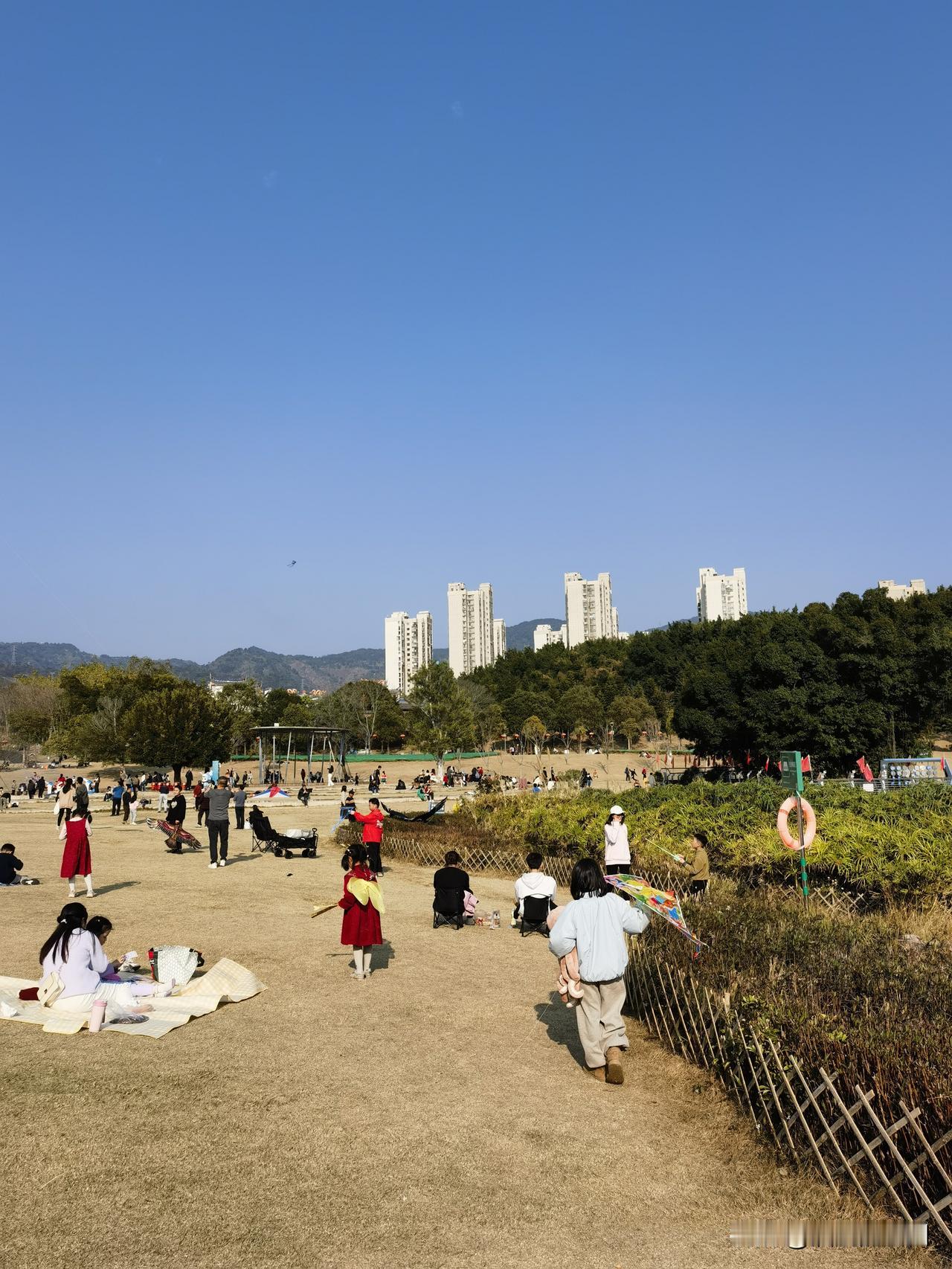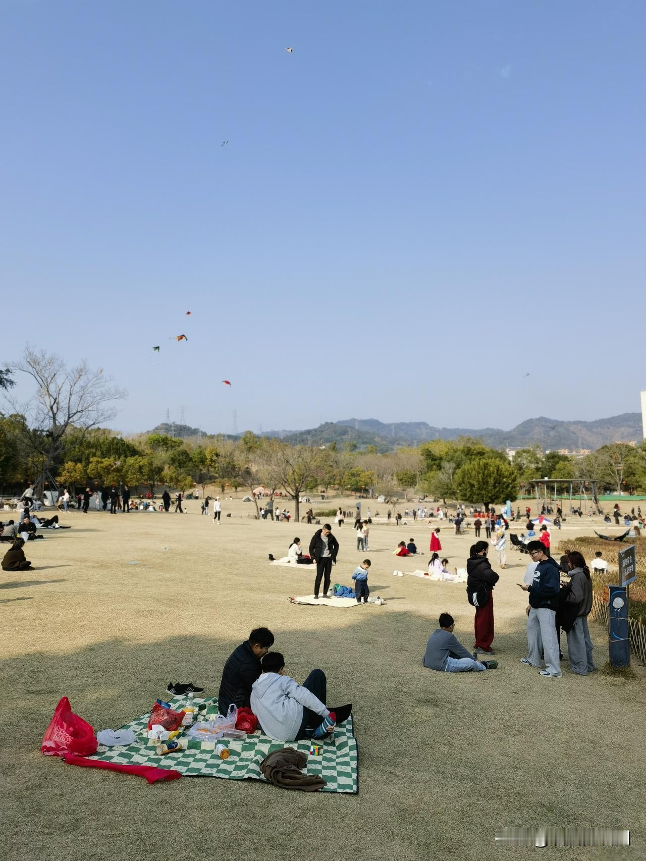 正好相反, 习俗上说初三不易出门, 经过前几天的忙碌, 初三应该在家休息一下。 但是对想在春节期间旅游的, 或是对于没有走亲访友的人们来说, 初三正是应该出门的日子。 今天福州好天气, 风和日丽,气温8-19度, 正是遛弯的好日子。 春节期间福州的地铁和公交免费, 为了迎接八方来客, 福州提供许多免费停车, 城内大大小小的公园也都是免费, 吸引了许多外地游客。 “七溜八溜不离福州” 春节遛弯的去处比比皆是, 因为有段时间没去牛岗山, 所以今天全家决定去牛岗山踏春。 到了才发现, 今日到牛岗山遛弯的人超出预料, 慢跑的,散步的, 摄影的,遛孩的, 有的在草地上搭起小帐篷, 有的铺开折叠桌椅泡茶, 有的放起风筝…… 时光放慢了,真好!