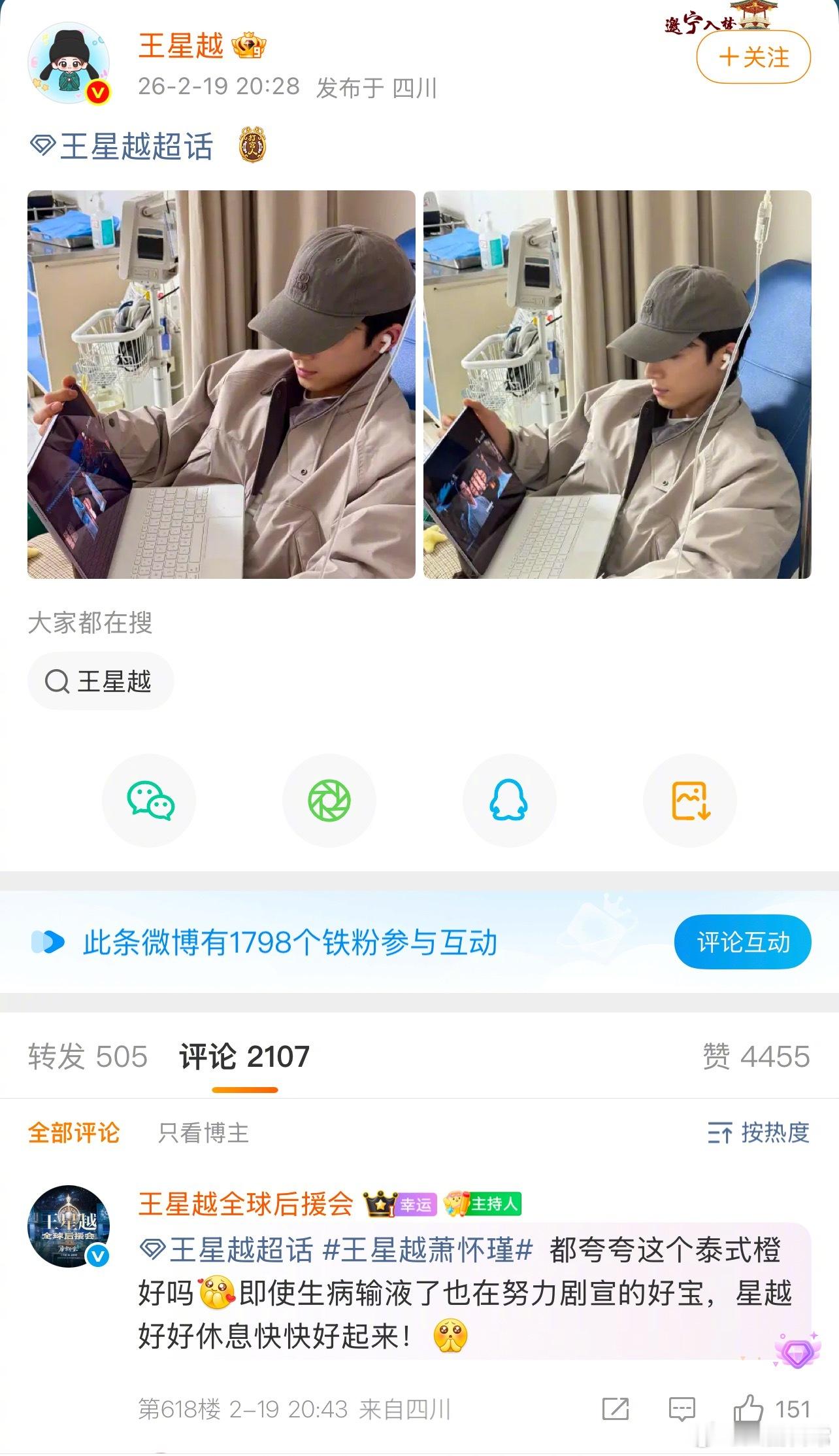 王星越生病输液也在努力剧宣