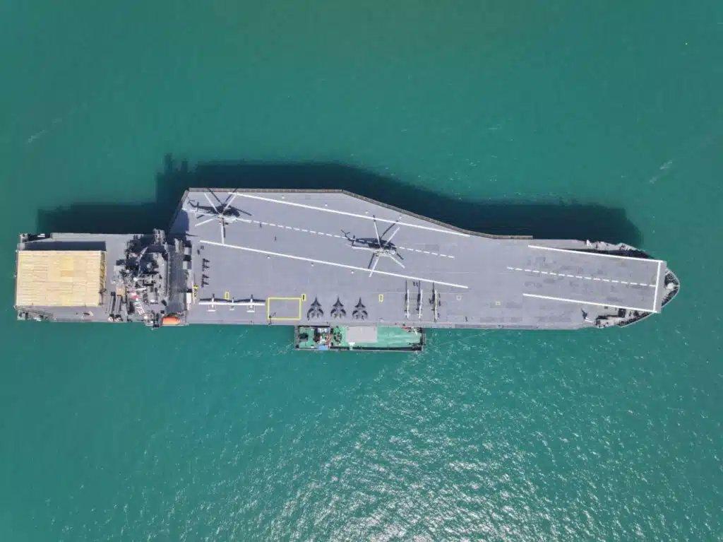 鲜为人知的是,伊朗拥有一艘名为“沙希德·巴赫曼·巴盖里”号的航空母舰,它由一艘集装箱船(佩拉林号)改装而成。实际上,它是一艘无人机航母,配备一条180米长的滑跃式跑道,用于无人机起降。这艘长240米、排水量超过4万吨的航母可以起飞小型无人机,例如Qaher-313(喷气式动力无人机),并搭载两架直升机。视频显示,该舰起降时未使用阻拦装置。据报道,它还能操控无人水下航行器。该舰由一台MAN B&W柴油发动机驱动,航速可达20节以上。坦格西里少将表示,该舰的作战半径为22000海里,无需加油即可在远海执行长达一年的任务。它配备了短程和中程防空系统、信号情报和电子支援设备。