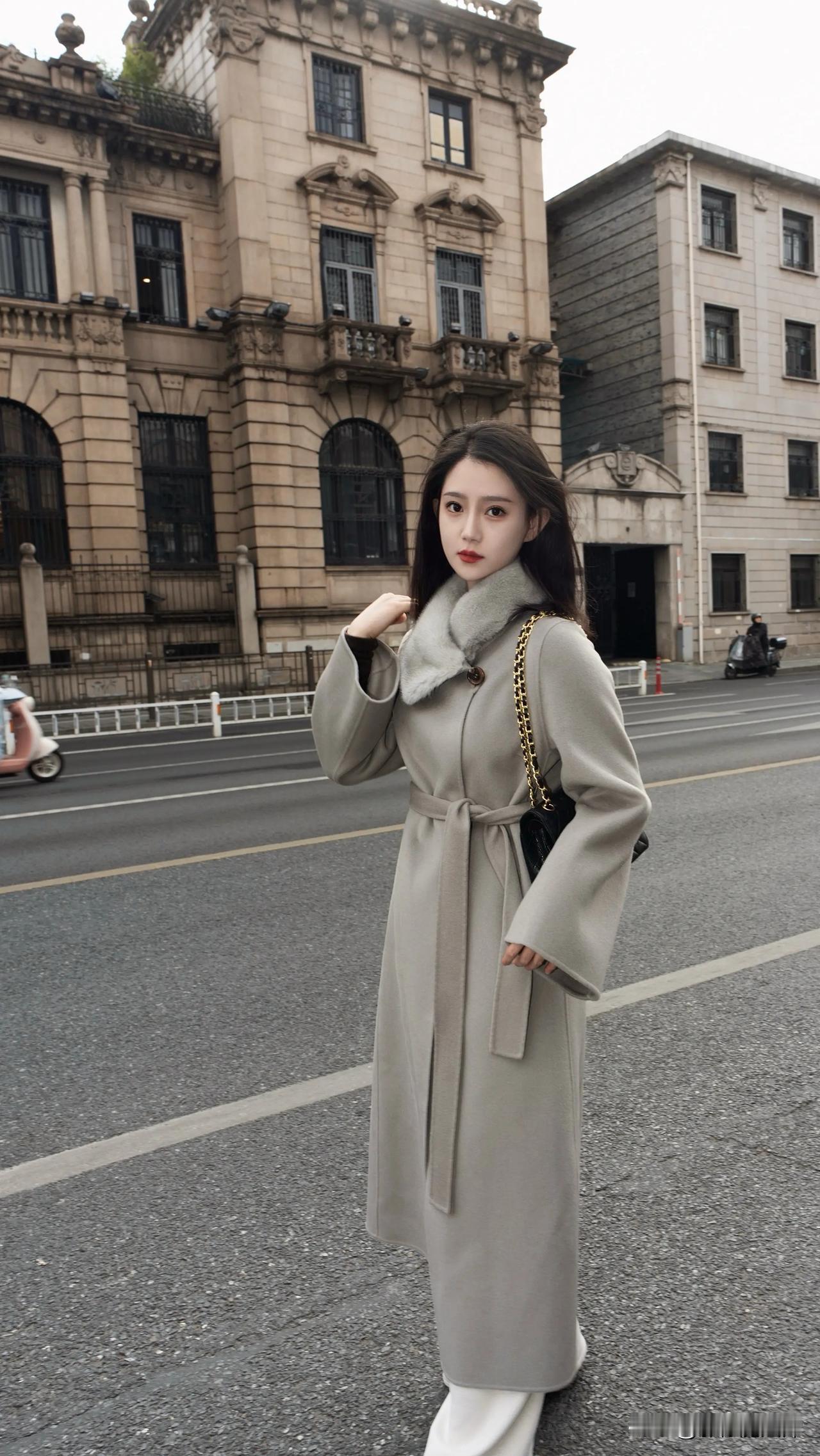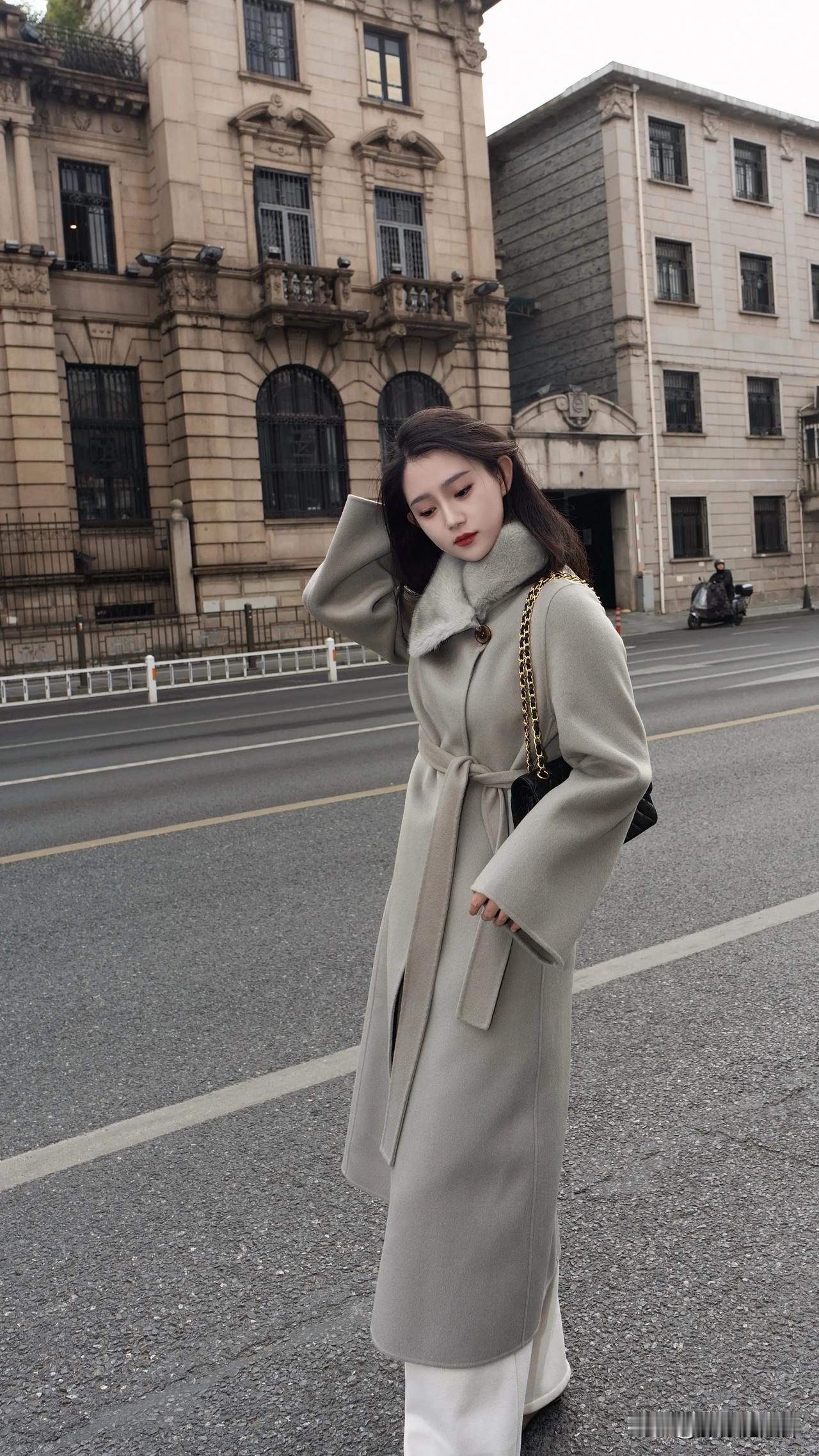 温柔到骨子里的秋冬穿搭,浅灰大衣配毛领太显贵气穿搭大衣灰色穿搭
