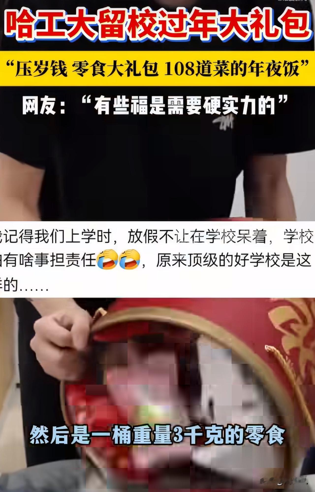 “哈工大这波操作太暖心了!”留校学生纷纷晒出惊喜:牛奶、零食大礼包拿到手软,除夕106道硬菜管够,初一到初三餐券免费,还发200元“压岁钱”。校领导走进食堂,陪大家包饺子、唠家常,冷清的校园满是烟火气。这106道菜,刚好契合建校106周年,细节里全是用心。 针对哈工大此操作,有网友直言:“这才是大学该有的样子,实力够硬,心也够暖。” 还有人说:“没能回家却被学校宠成孩子,这份温暖大概能记很多年”。 在周少看来,哈工大的暖心,远不止一顿饭、一份礼。好的教育从不是只盯着分数与成果,而是把学生放在心上,在细微处托住他们的情绪与归属感。对离家的孩子来说,一顿热饭、一句问候,往往比说教更有力量。 大学不只是传授知识的地方,更该是有温度的港湾。不刻意、不敷衍,把关怀落到实处,这样的育人细节,比奖牌与排名,更能滋养人心。#寻美三湘# #周少说教育#