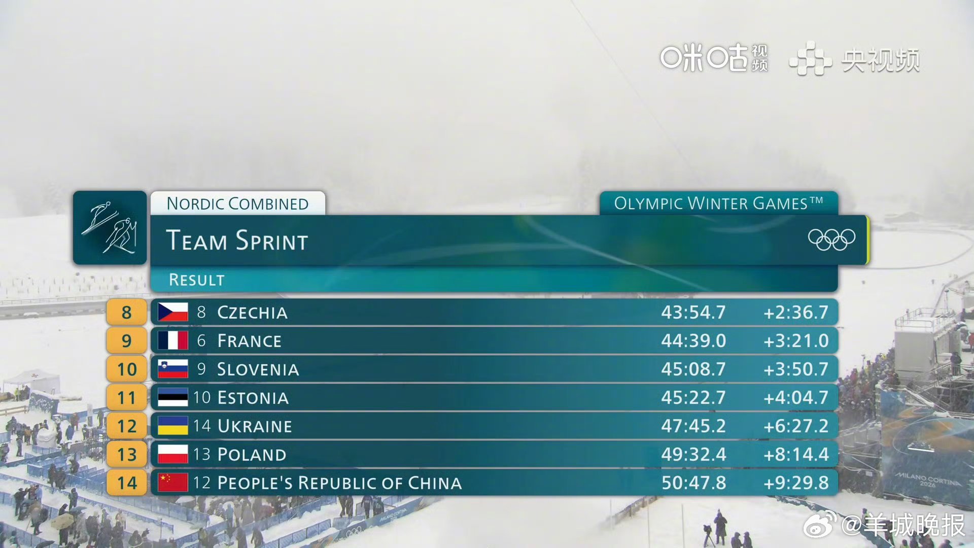 【#赵嘉文赵子贺团体短距离完赛#】米兰冬奥会北欧两项团体短距离大雪中进行,中国队赵嘉文、赵子贺总成绩50:47.8,第14名完赛。两位选手不畏强手、全力以赴,展现了中国冰雪的拼搏精神。#党中央国务院向中国体育代表团致贺电##苏翊鸣因北京冬奥会放弃当演员##刘少昂说祖国需要我就一直在##原来苏翊鸣谷爱凌从小就认识##冬奥版美强惨出现了#(咪咕体育)(编辑:张子皓;审签:艾渝)