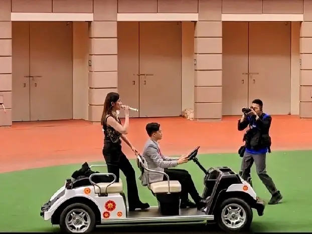 陈慧琳现身沙田马场献唱,坐着小车车出场,好拉风啊!其实她很可爱,别看她都53岁了,还很有少女感,港媒的记者也蛮爱她!
