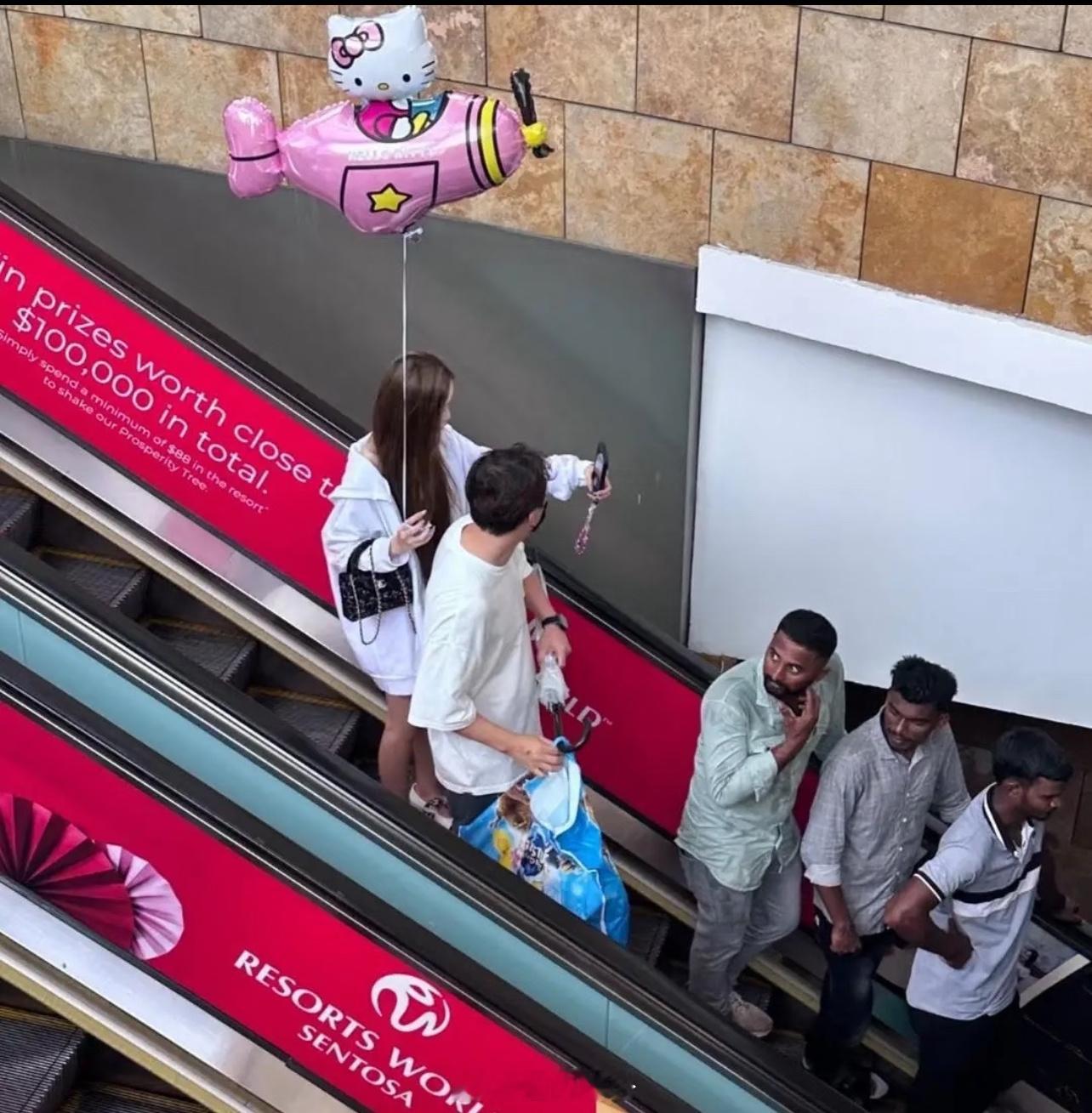 38岁王思聪和女友懒懒在新加坡过年,两个人一起到商场购物,他帮女友提着购物袋,看着非常贴心,他体态偏胖,后背微驼,着装休闲,搭着女友的肩膀尽显恩爱,有钱人现在都喜欢出国过年,真的很滋润,两人的小日子过的真惬意啊!