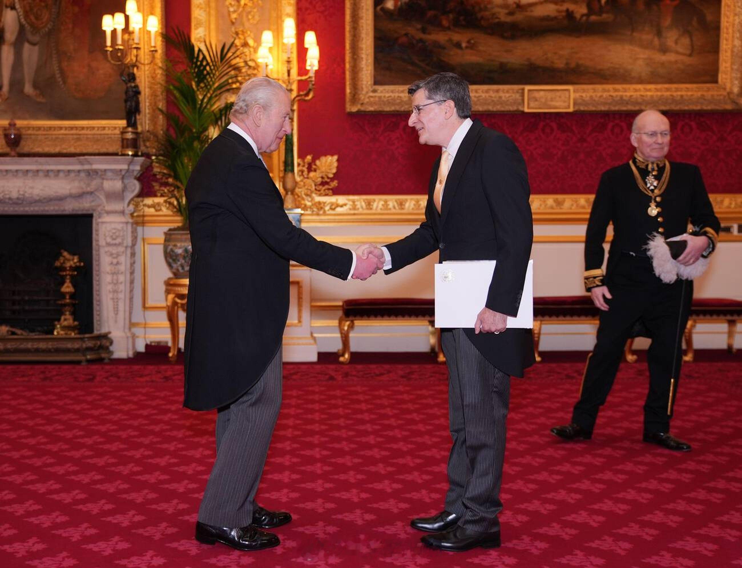 今天查尔斯三世在伦敦圣詹姆斯宫分别接见肯尼亚高级专员🇰🇪Maurice Makoloo、萨尔瓦多驻英大使🇸🇻Francisco Lima Mena和西班牙驻英大使🇪🇸Emma Aparici Vazquez de Parga。